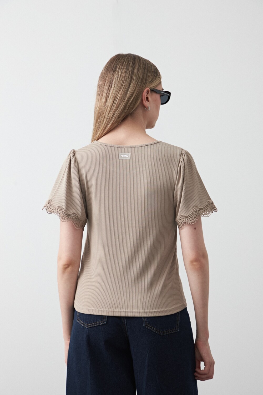 Remera confeccionada en tejido acanalado con excelente elasticidad, que acompaña el cuerpo sin ajustar y aporta una caída prolija. El diseño suma mangas cortas con terminación de puntilla, un detalle delicado que eleva la prenda y la vuelve ideal para looks urbanos o más arreglados. Una silueta versátil, clave para elevar cualquier look sin perder comodidad.