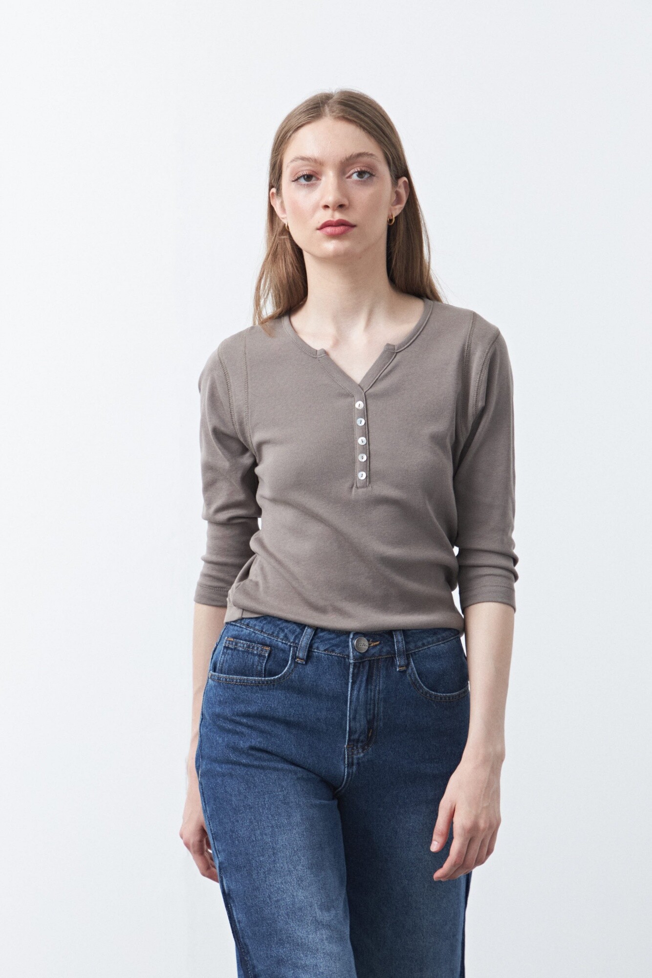 Remera de manga larga confeccionada en algodón, de calce clásico y silueta limpia, pensada como un básico infaltable de guardarropa. Presenta escote con abertura y cartera corta de botones que suma un detalle sutil y funcional, manteniendo una estética minimal y atemporal. Ideal para usar sola o como base de looks urbanos y de oficina relajada, es una pieza versátil que acompaña distintas temporadas.
