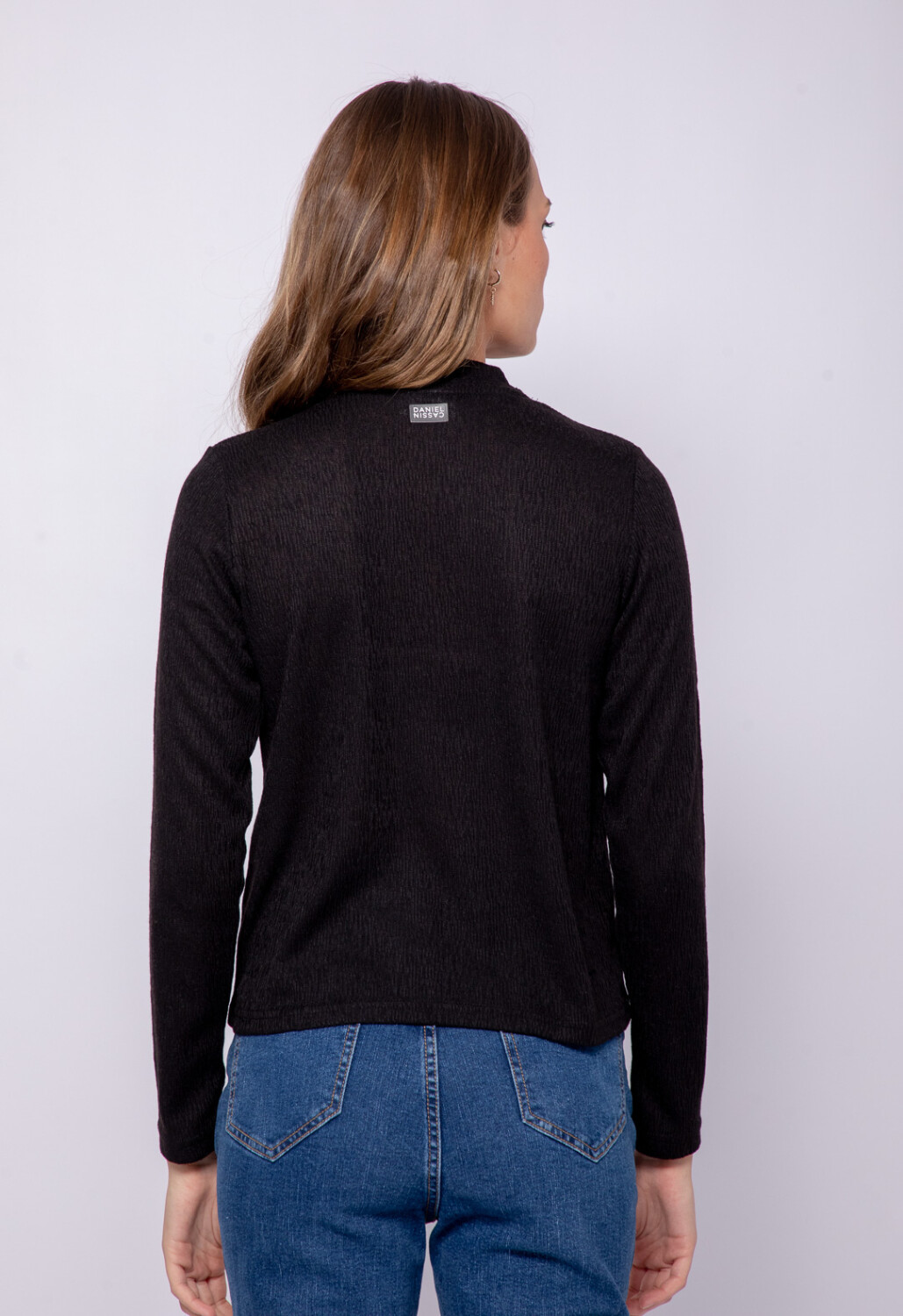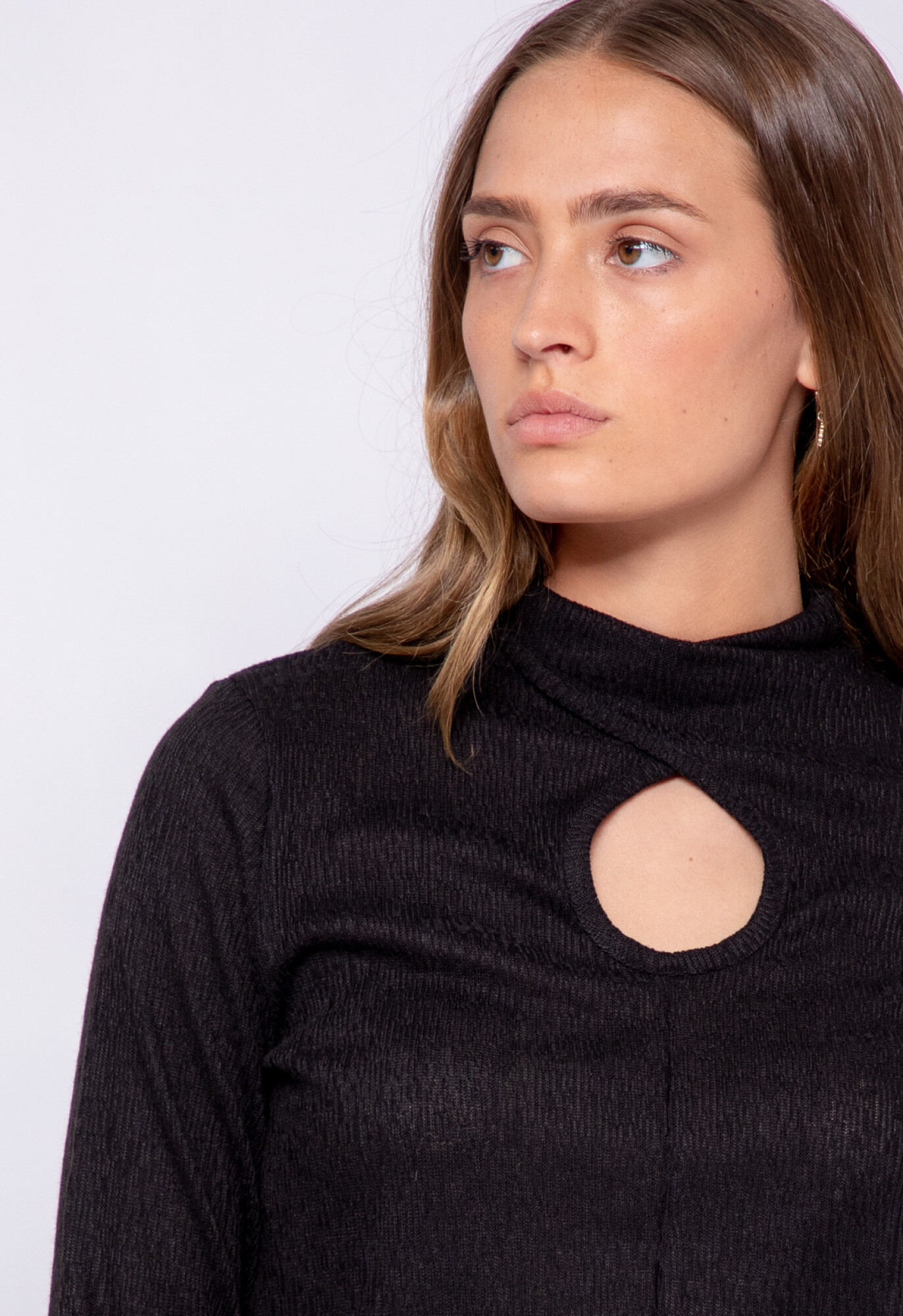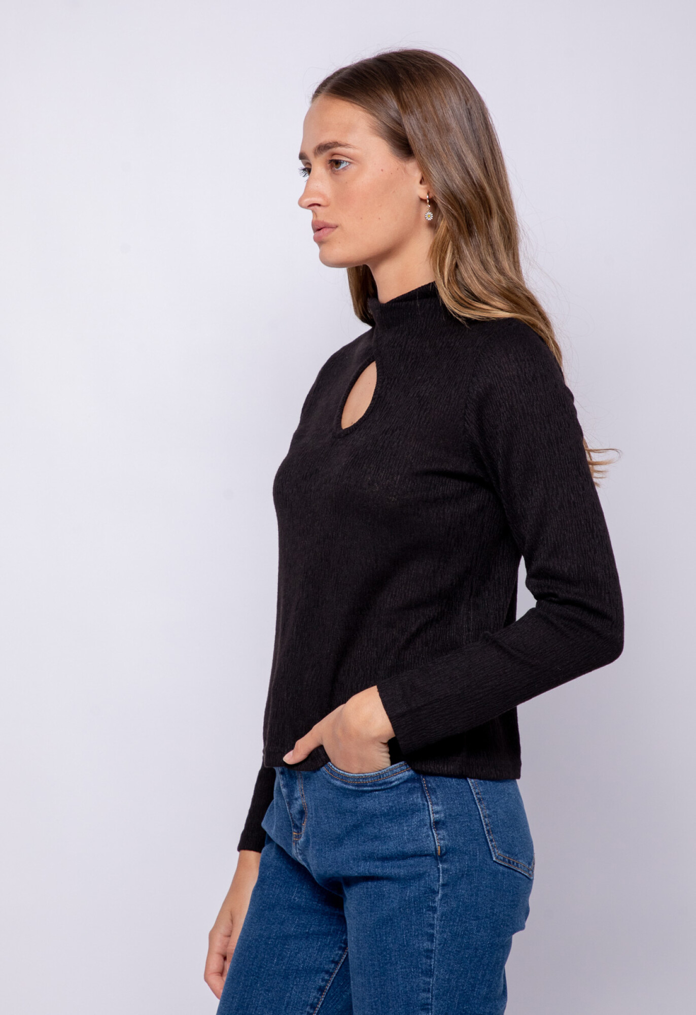Remera de manga larga con cut out en el pecho y cuello alto. Confeccionada en tela de textura diferenciada.