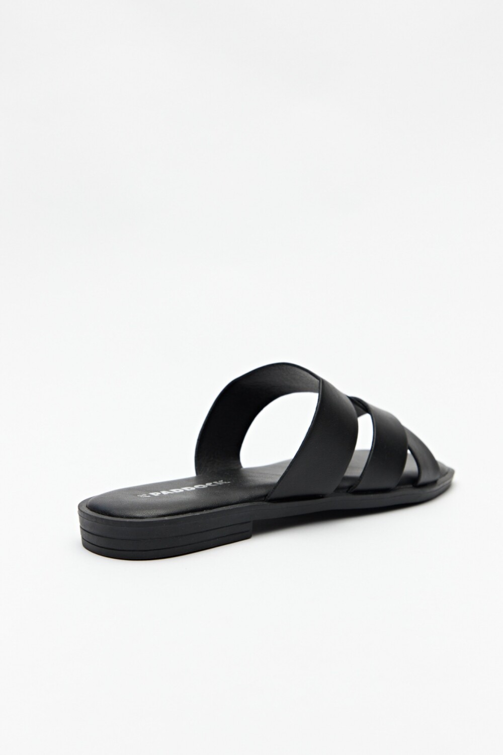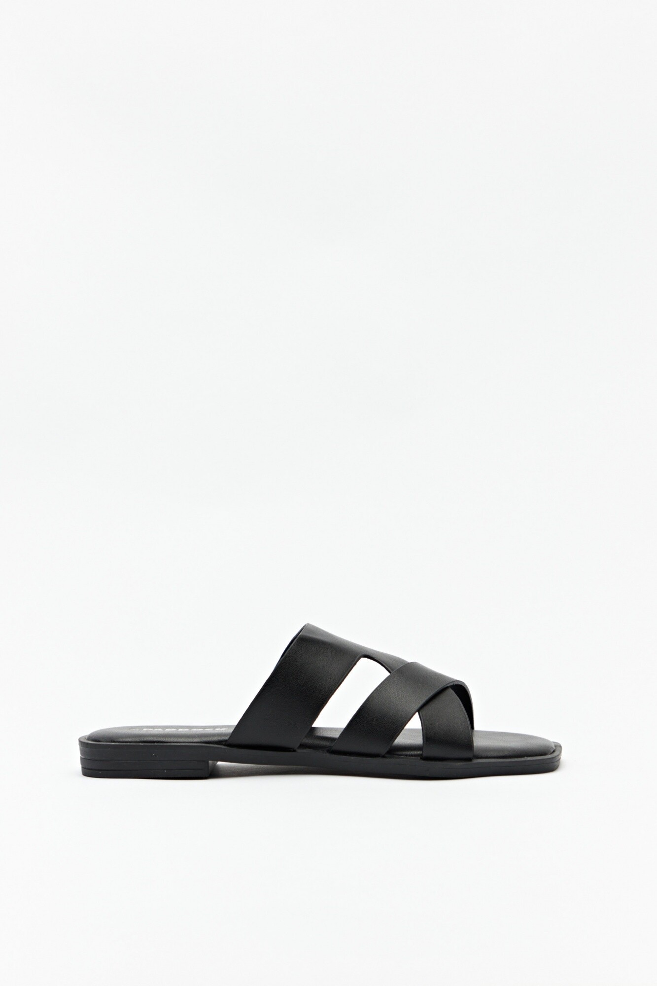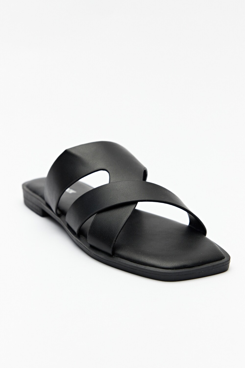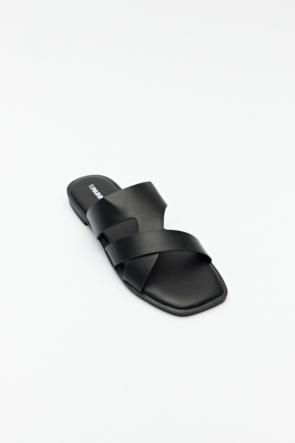 Comodidad y estilo en una misma pieza. Estas sandalias planas se destacan por su diseño de tiras anchas cruzadas, que brindan sujeción y un toque moderno. De punta cuadrada y base levemente acolchonada, son perfectas para acompañar tus looks de verano con un aire relajado y versátil. Ideales para combinar con vestidos, jeans o pantalones amplios.