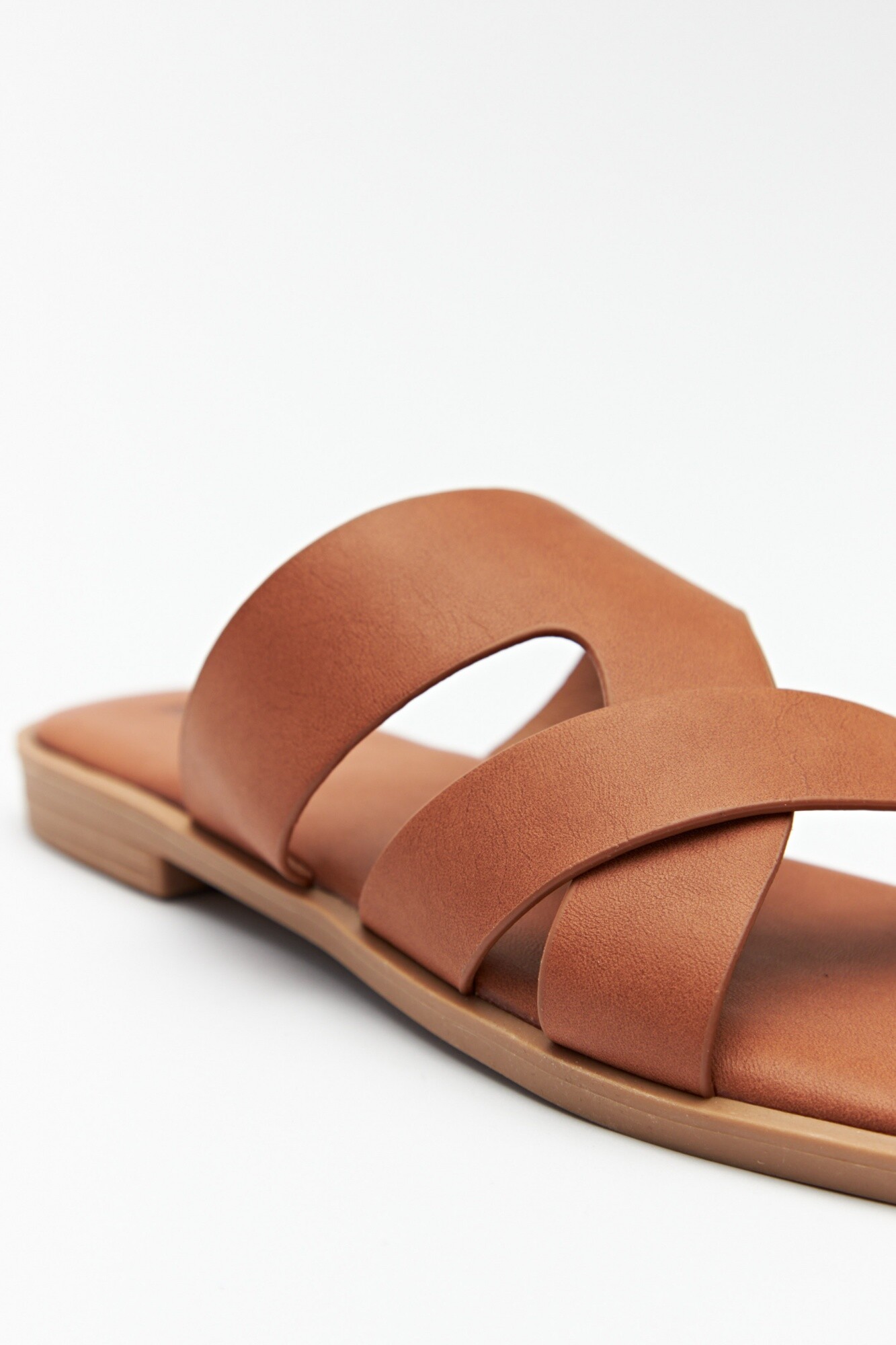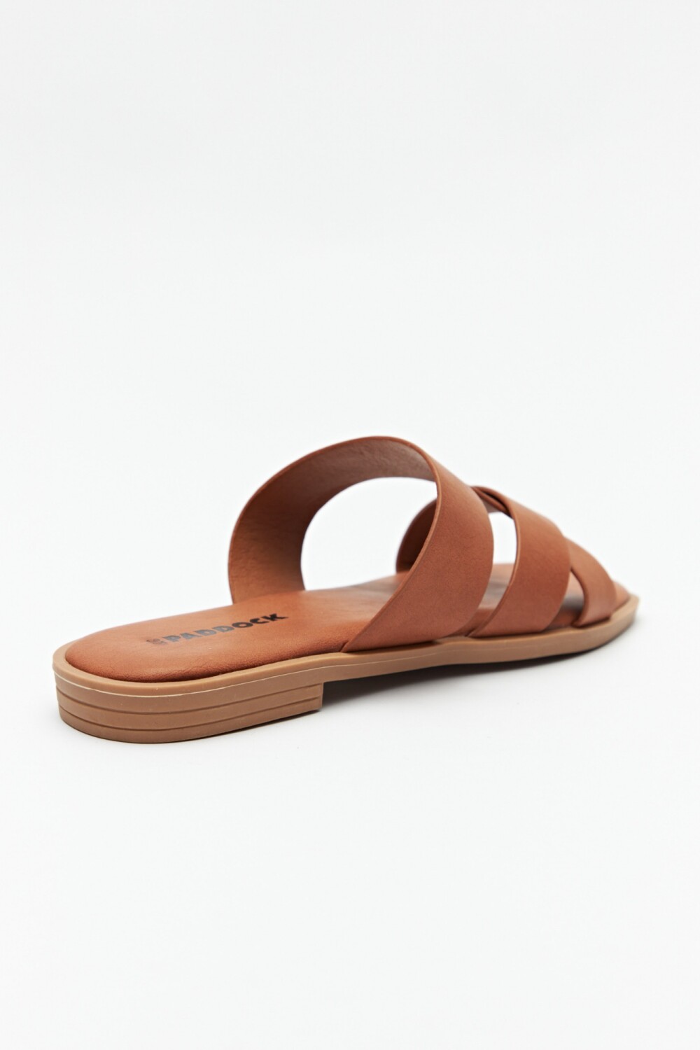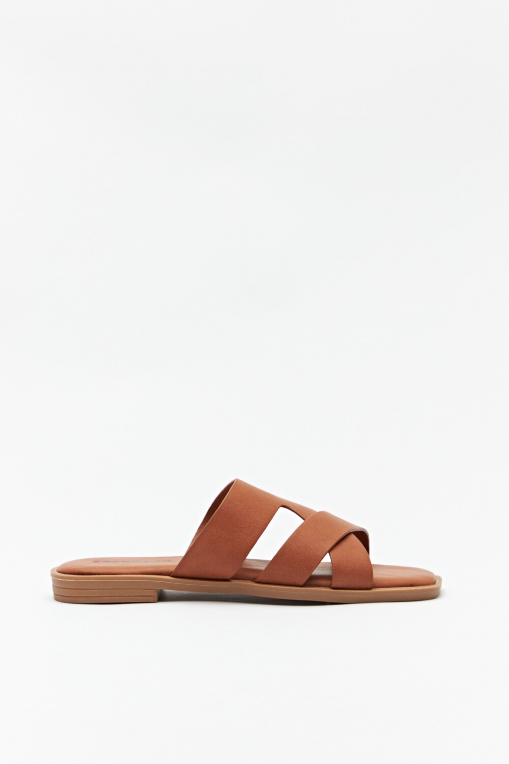 Comodidad y estilo en una misma pieza. Estas sandalias planas se destacan por su diseño de tiras anchas cruzadas, que brindan sujeción y un toque moderno. De punta cuadrada y base levemente acolchonada, son perfectas para acompañar tus looks de verano con un aire relajado y versátil. Ideales para combinar con vestidos, jeans o pantalones amplios.