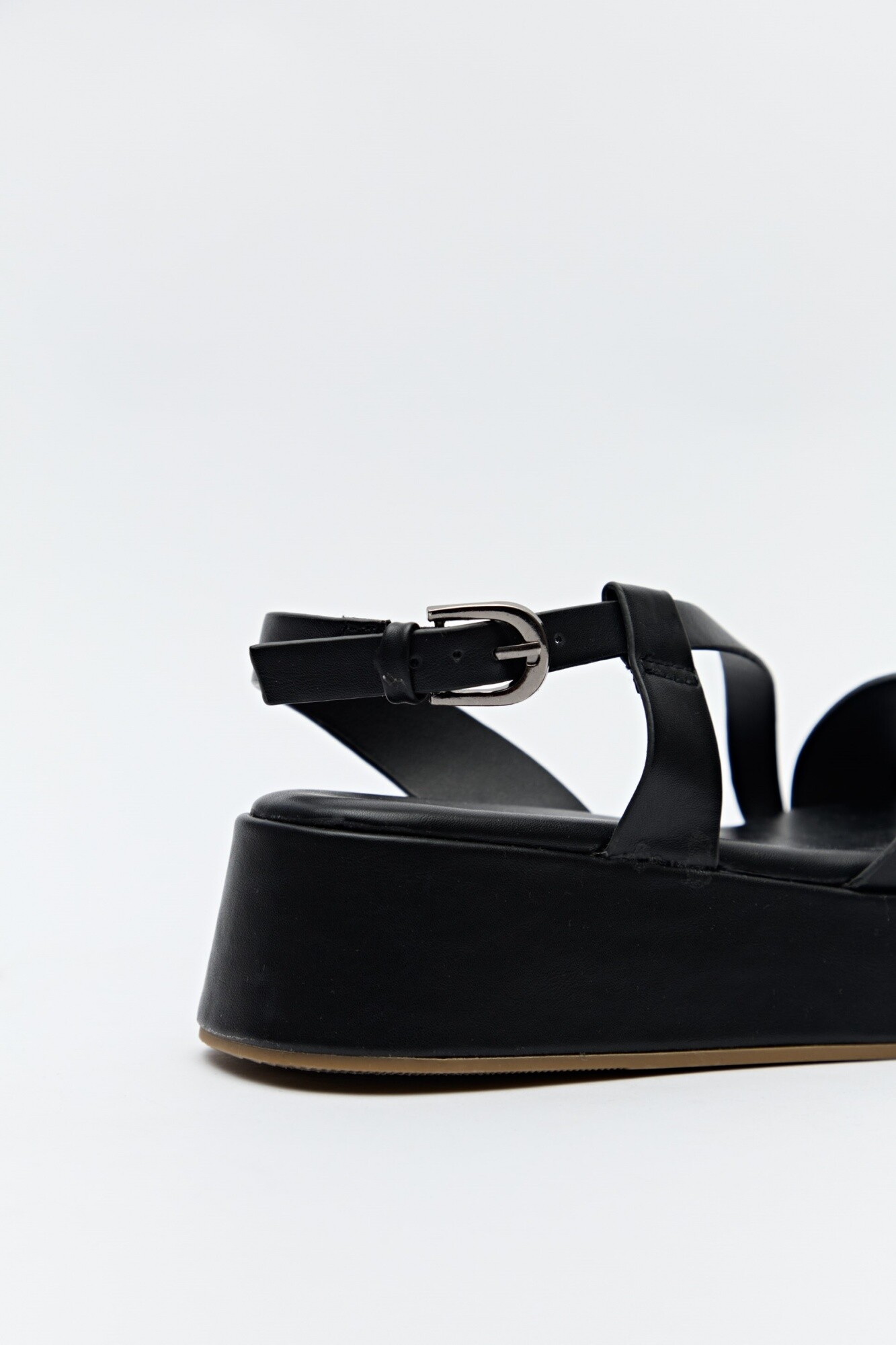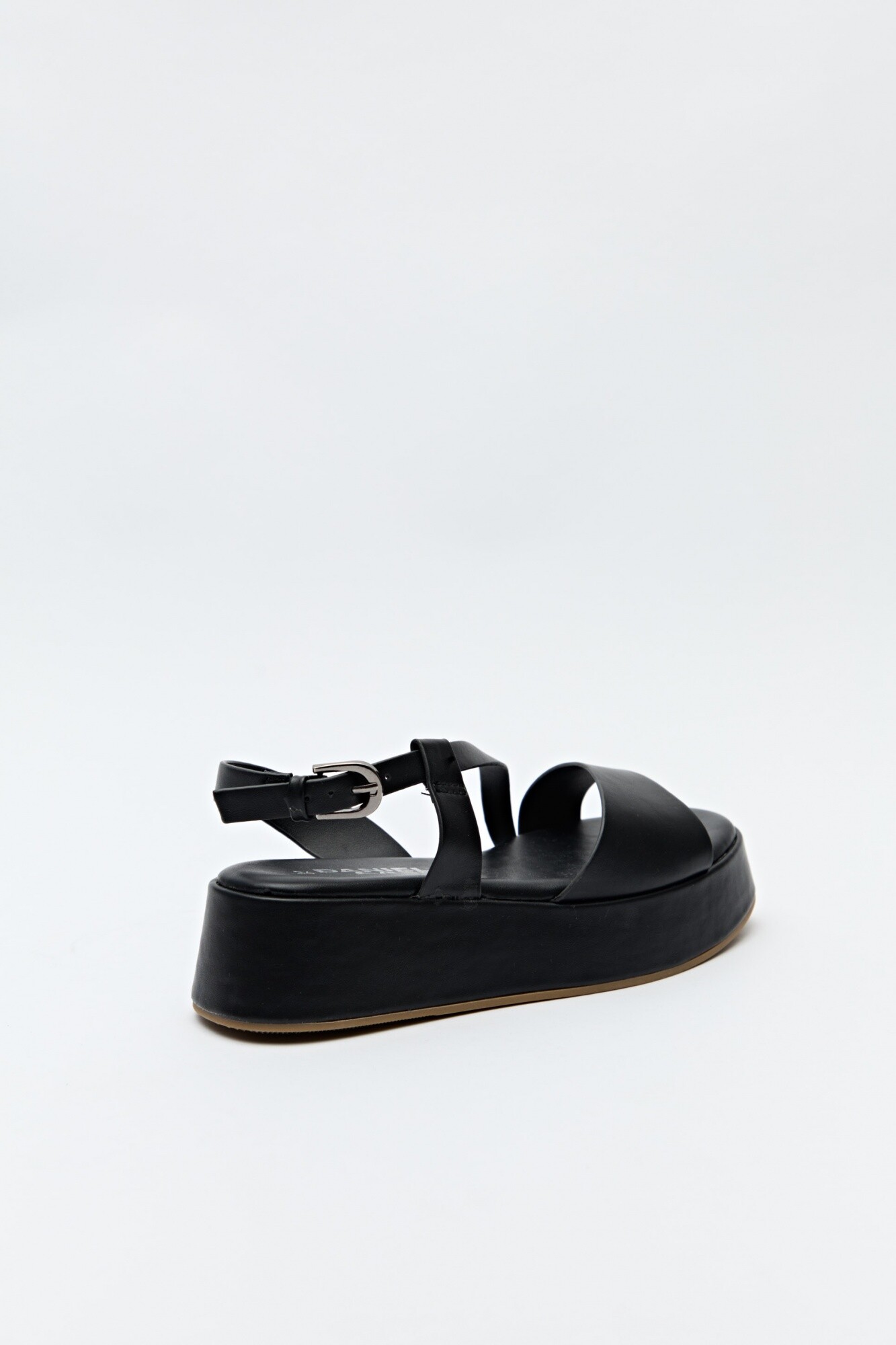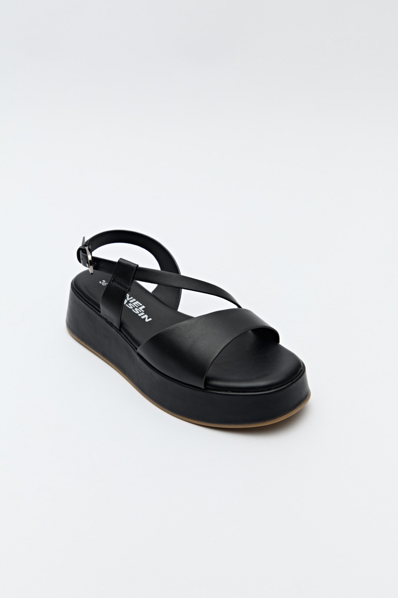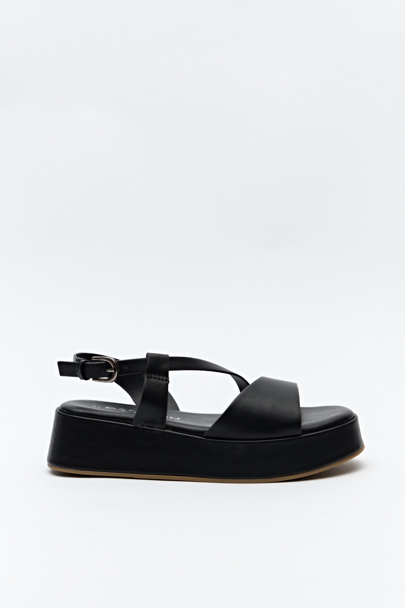 Sandalia con plataforma y diseño de tiras cruzadas que realzan el empeine con líneas simples y modernas. Su base liviana ofrece altura y confort en partes iguales, mientras que la pulsera ajustable brinda sujeción y estabilidad. Un modelo versátil y en tendencia, ideal para elevar tus looks estivales con un toque minimalista.