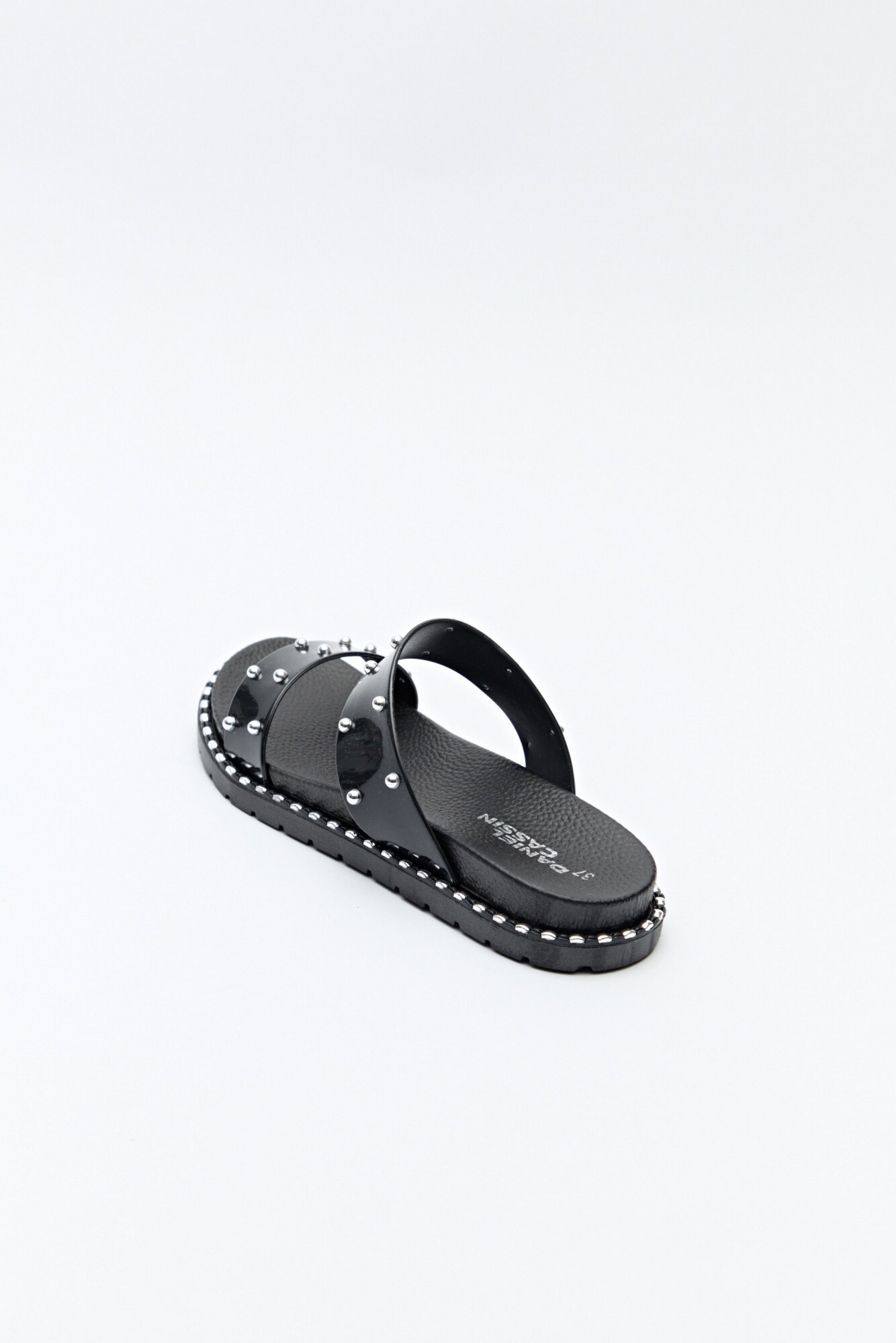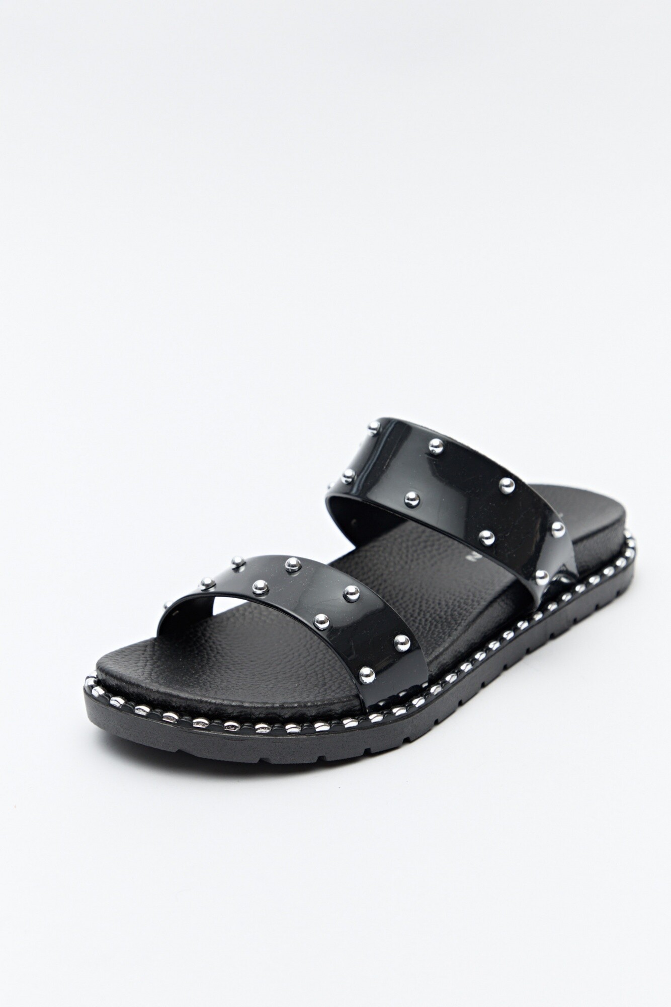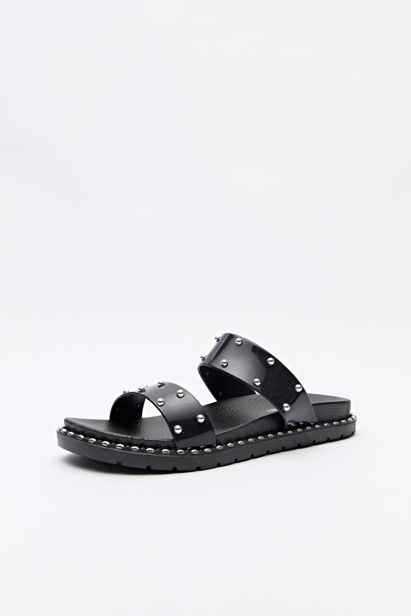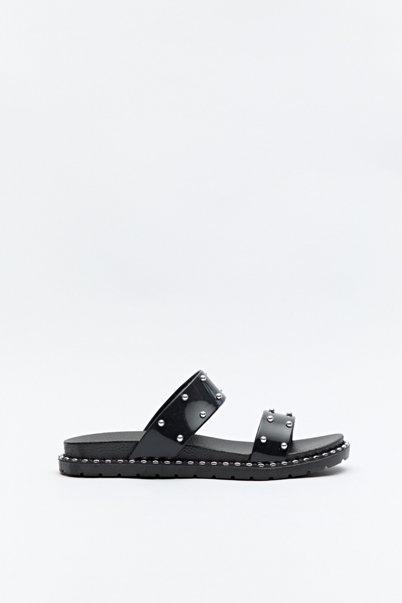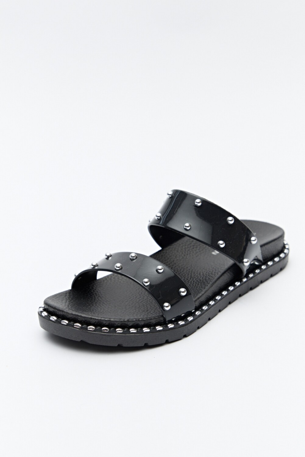 Con personalidad y estilo, estas sandalias se destacan por sus tiras anchas con microtachas metálicas y borde con detalles a tono que realzan el diseño. Su base con volumen leve y textura antideslizante garantiza confort sin perder actitud.