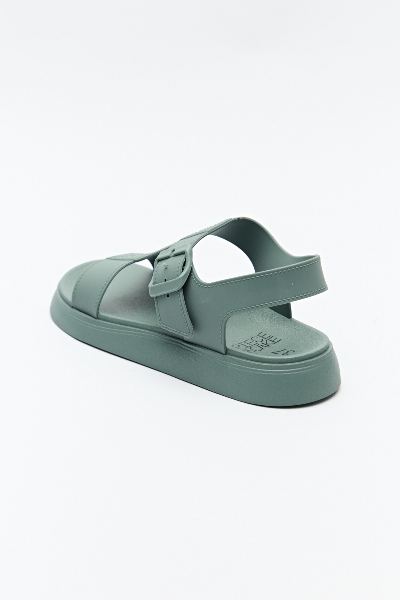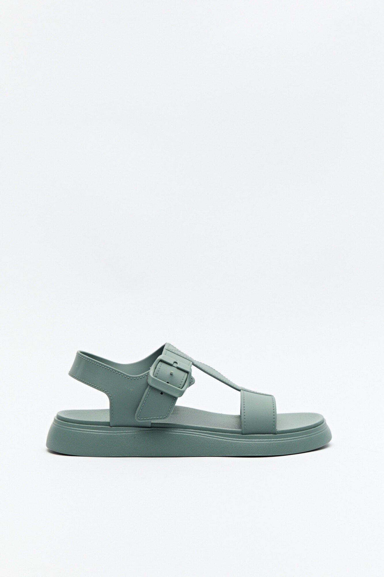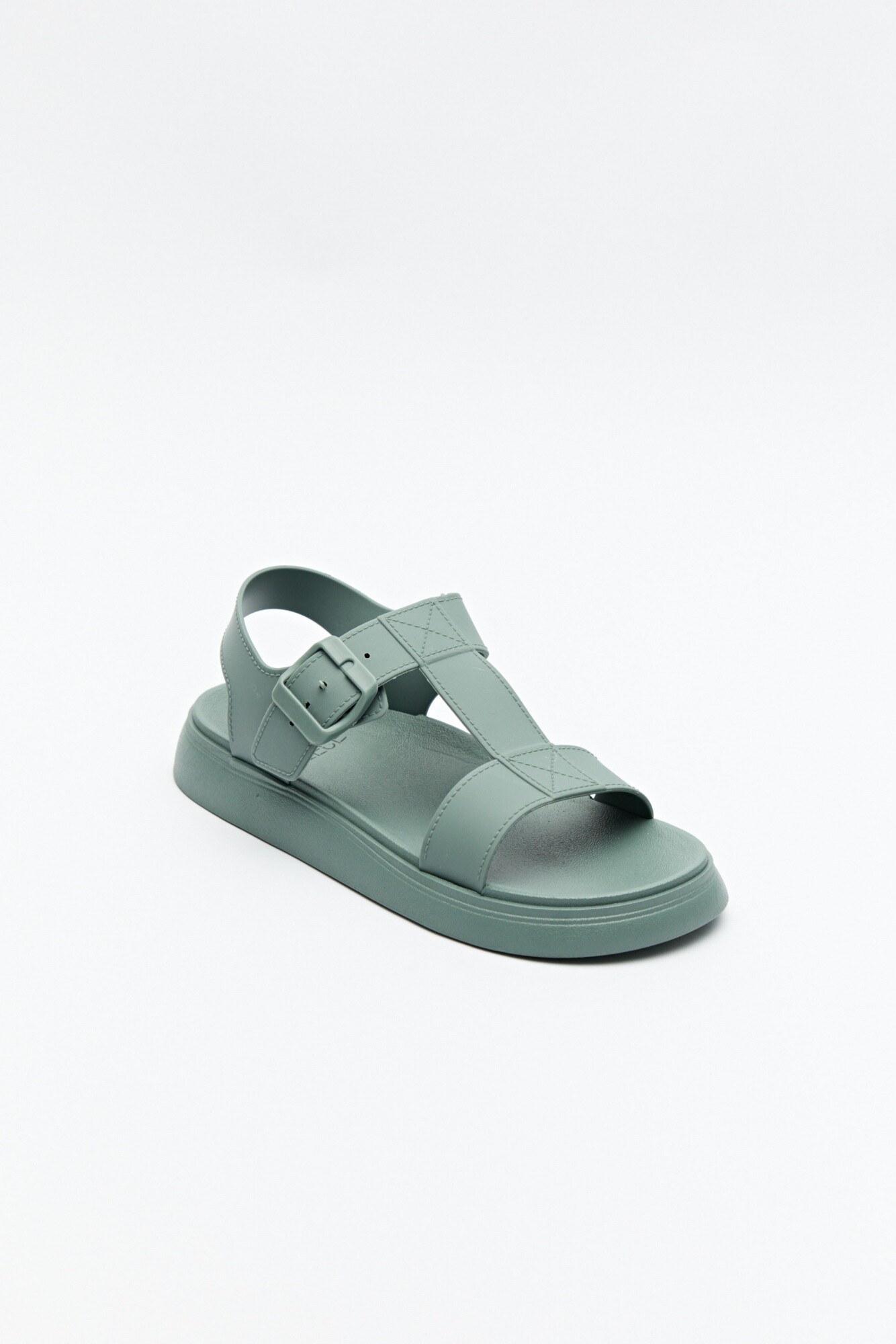 Sandalia baja con diseño de tiras anchas y hebilla lateral, ideal para un look cómodo y moderno. Su estructura liviana y base con leve plataforma aportan confort sin resignar estilo. Una opción versátil para acompañar desde looks urbanos hasta outfits más relajados.