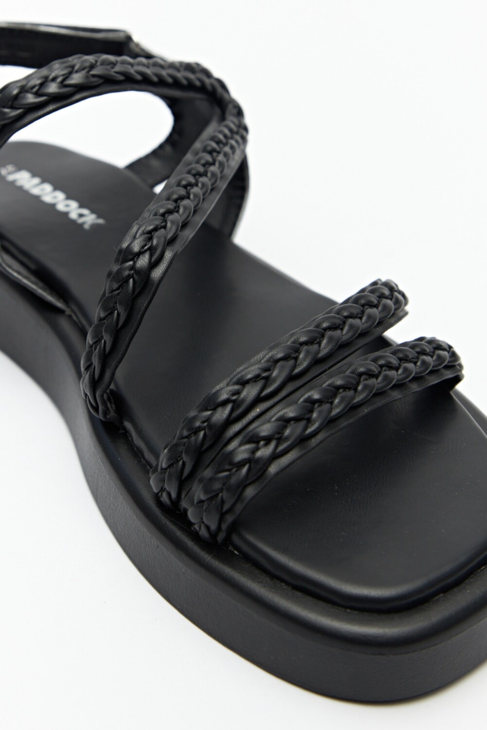Sandalias en símil cuero con agarre ajustable de velcro en el talón. Sus tiras son trenzadas, lo que aporta textura e identidad a tu look! Su plataforma es de 3cm de alto.
