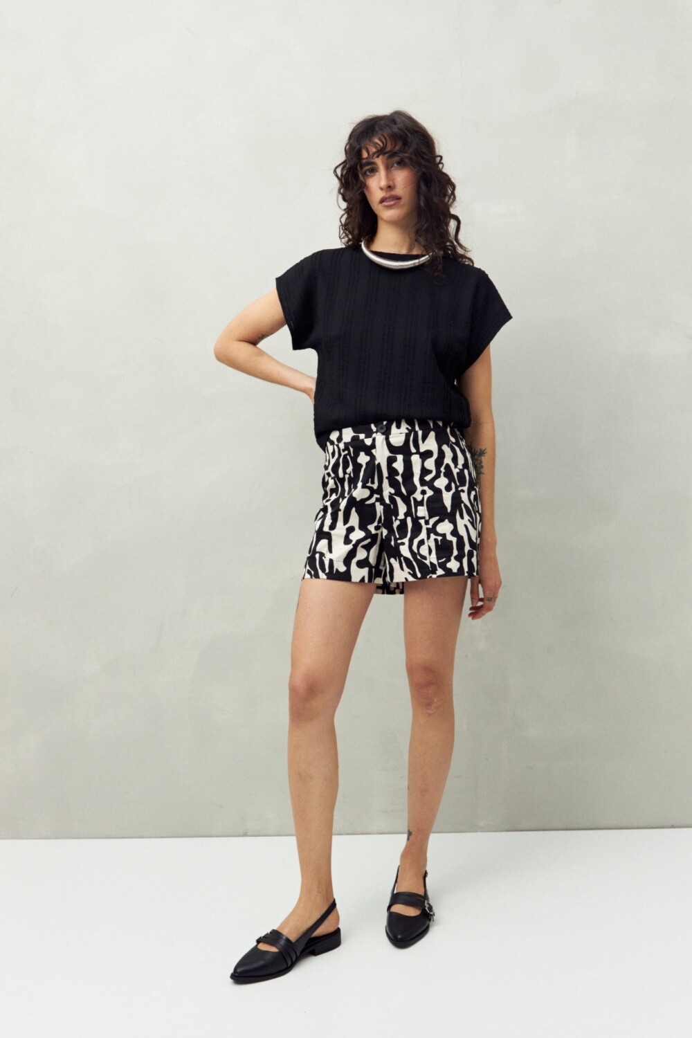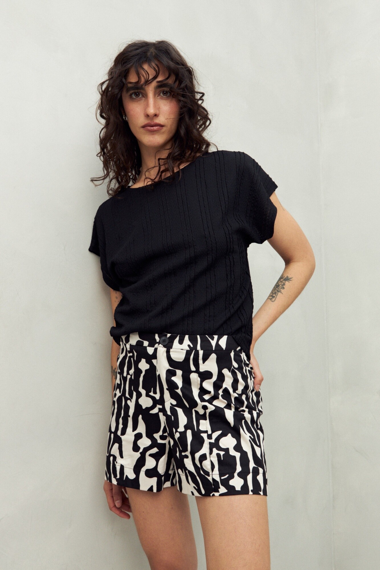 Short de algodón con estampas protagonistas que reinventan un básico de verano. Su silueta recta y estructura liviana aportan comodidad y estilo, ideal para armar looks urbanos con personalidad.
