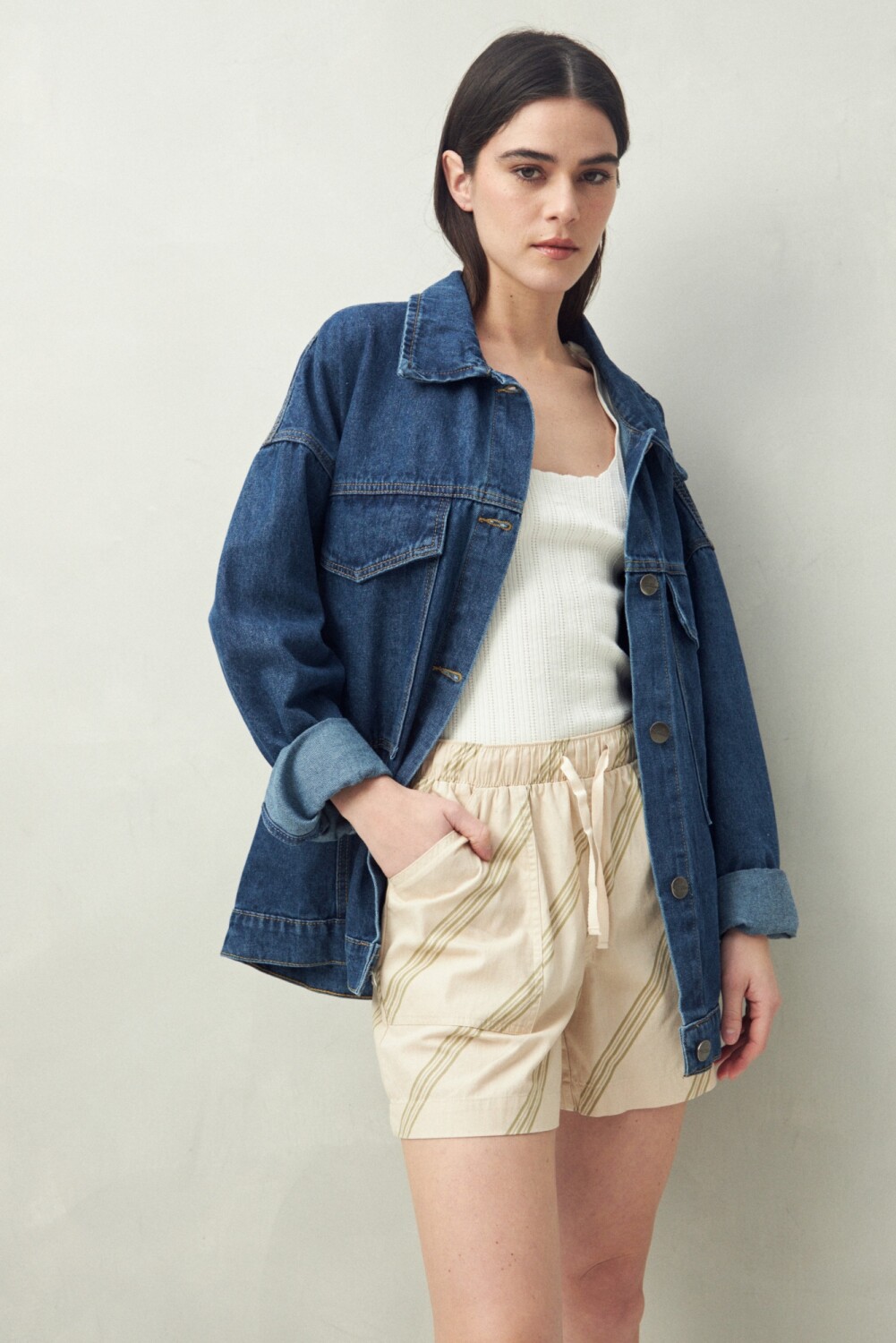 Short de algodón con cintura elastizada y cordón regulable, pensado para acompañar tus días con comodidad y estilo. Su calce relajado y los bolsillos delanteros aportan un aire práctico, mientras que las estampas le dan identidad propia: desde rayas diagonales que estilizan la silueta hasta un diseño orgánico con vibra natural y artística. Una prenda fresca, trendy y versátil para elevar cualquier look de verano.