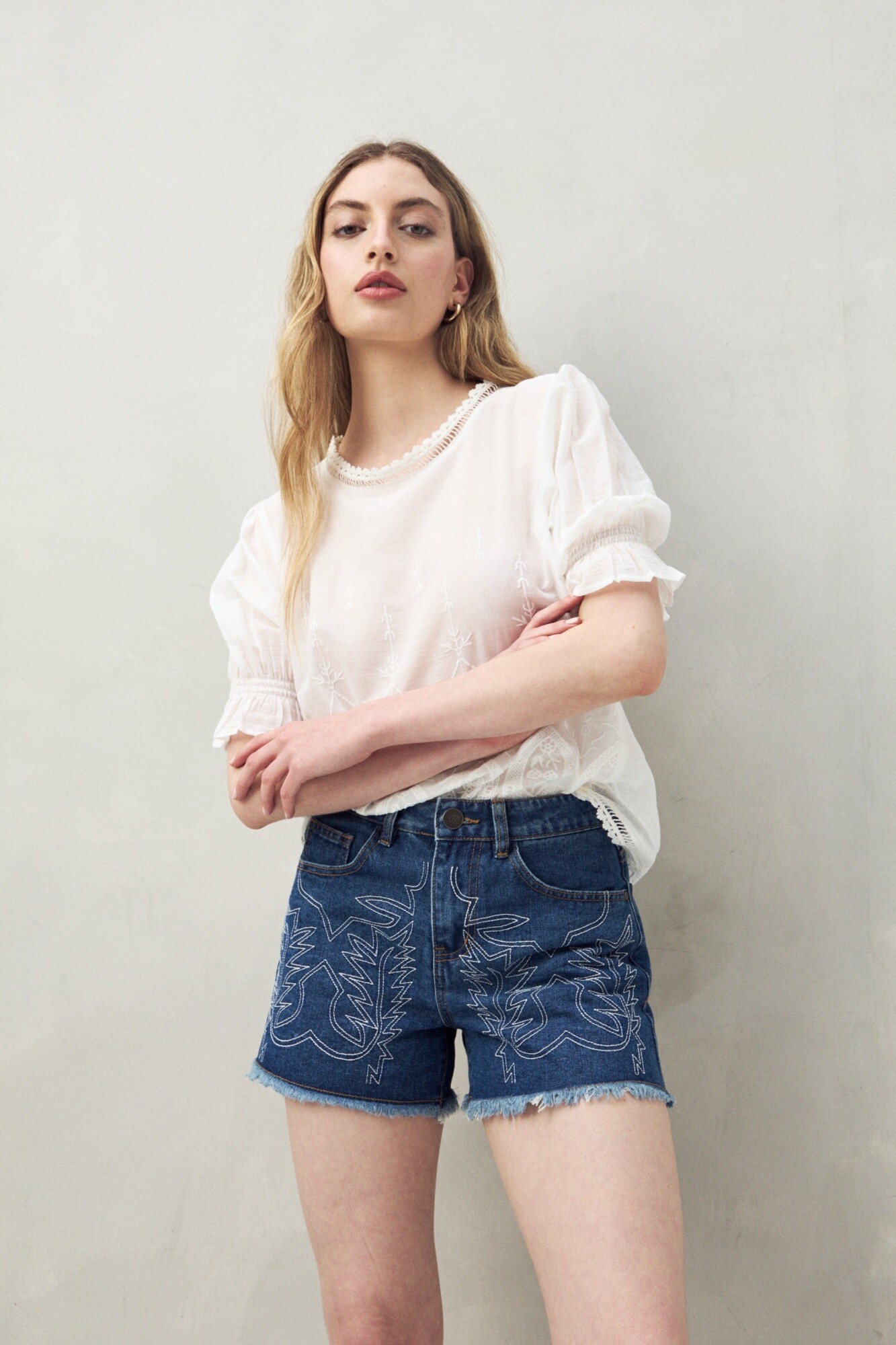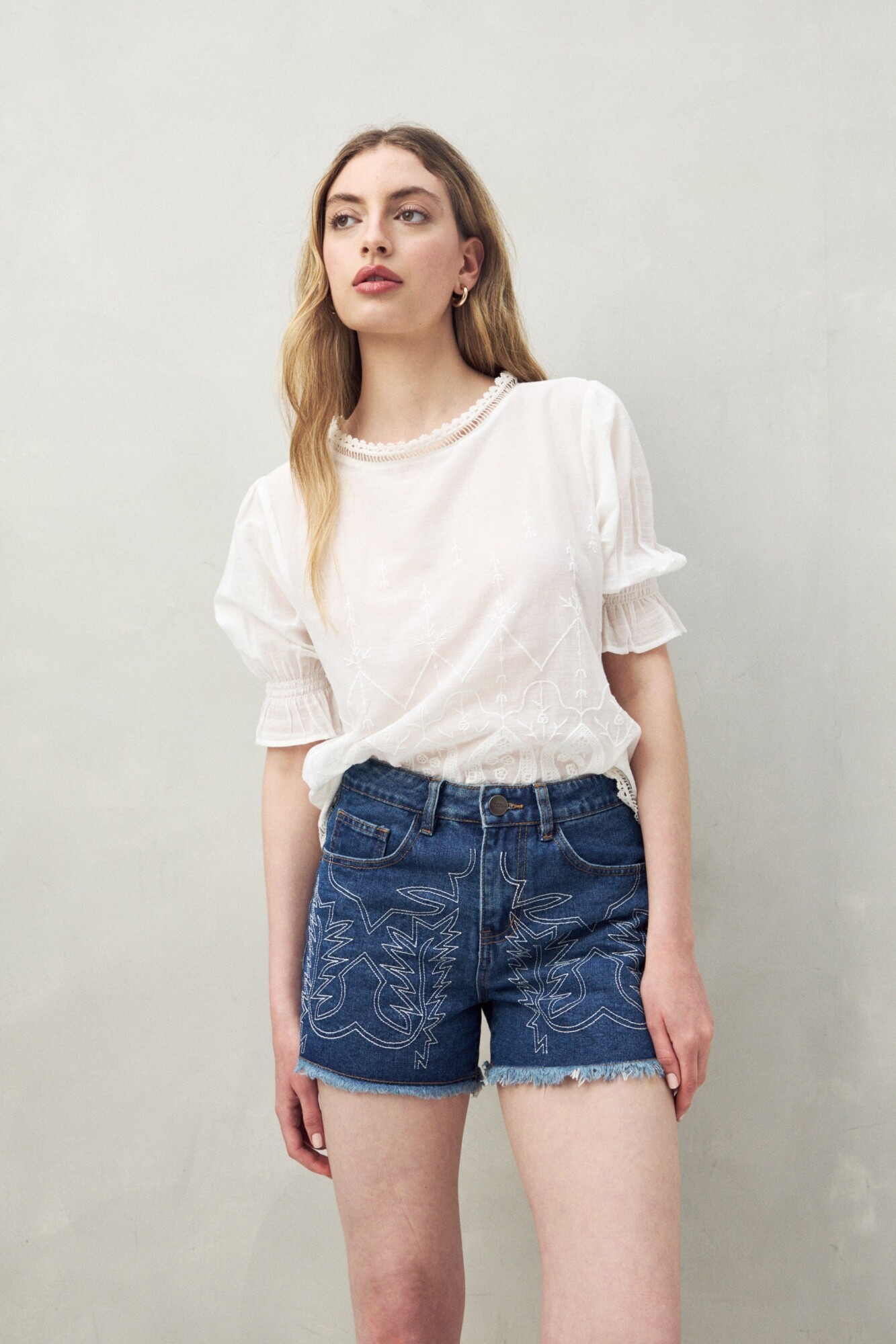 Short boho con bordado.