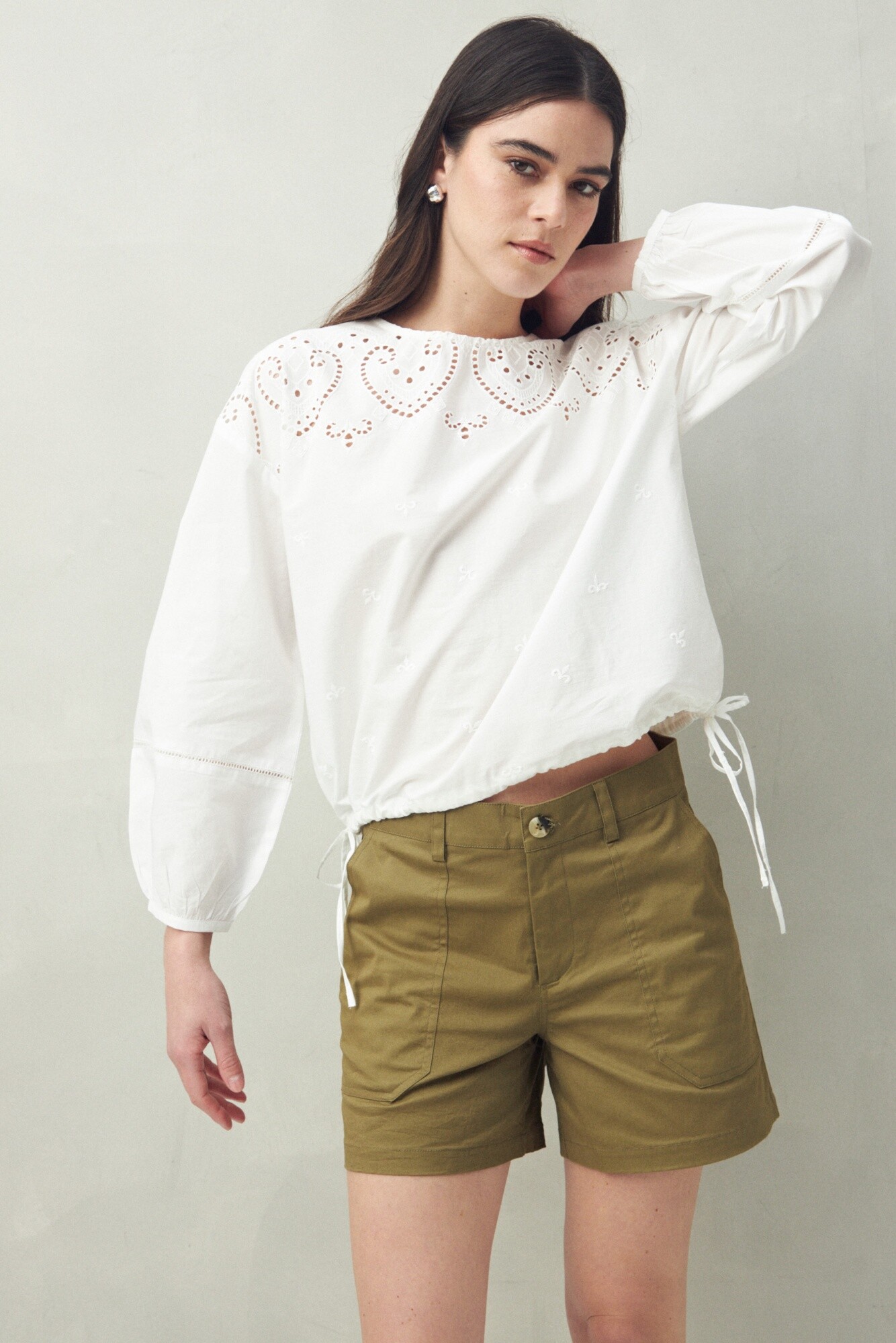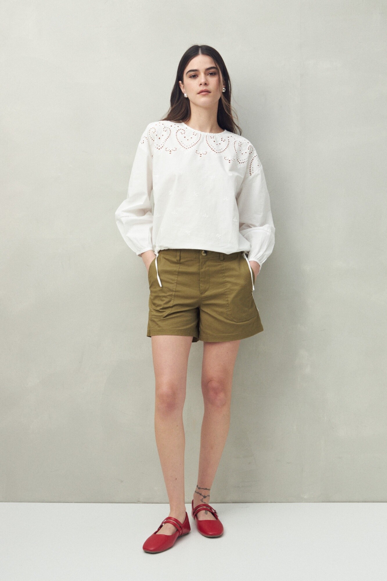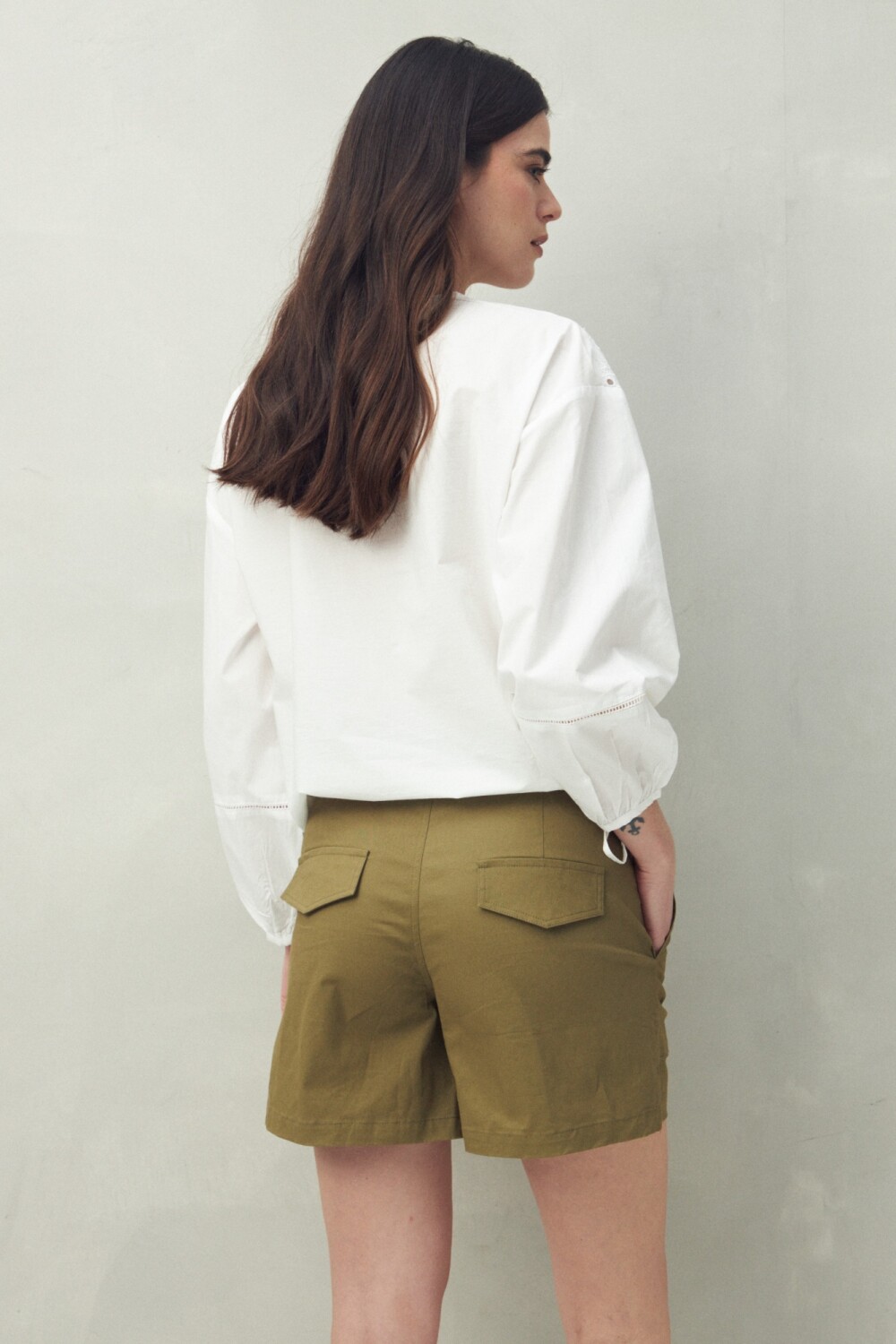 Short de algodón con un fit cómodo y práctico, diseñado para el día a día. De tiro medio, cuenta con bolsillos delanteros y traseros que refuerzan su estilo utilitario sin perder simpleza. Una prenda versátil y atemporal, ideal para armar looks frescos y relajados de verano.