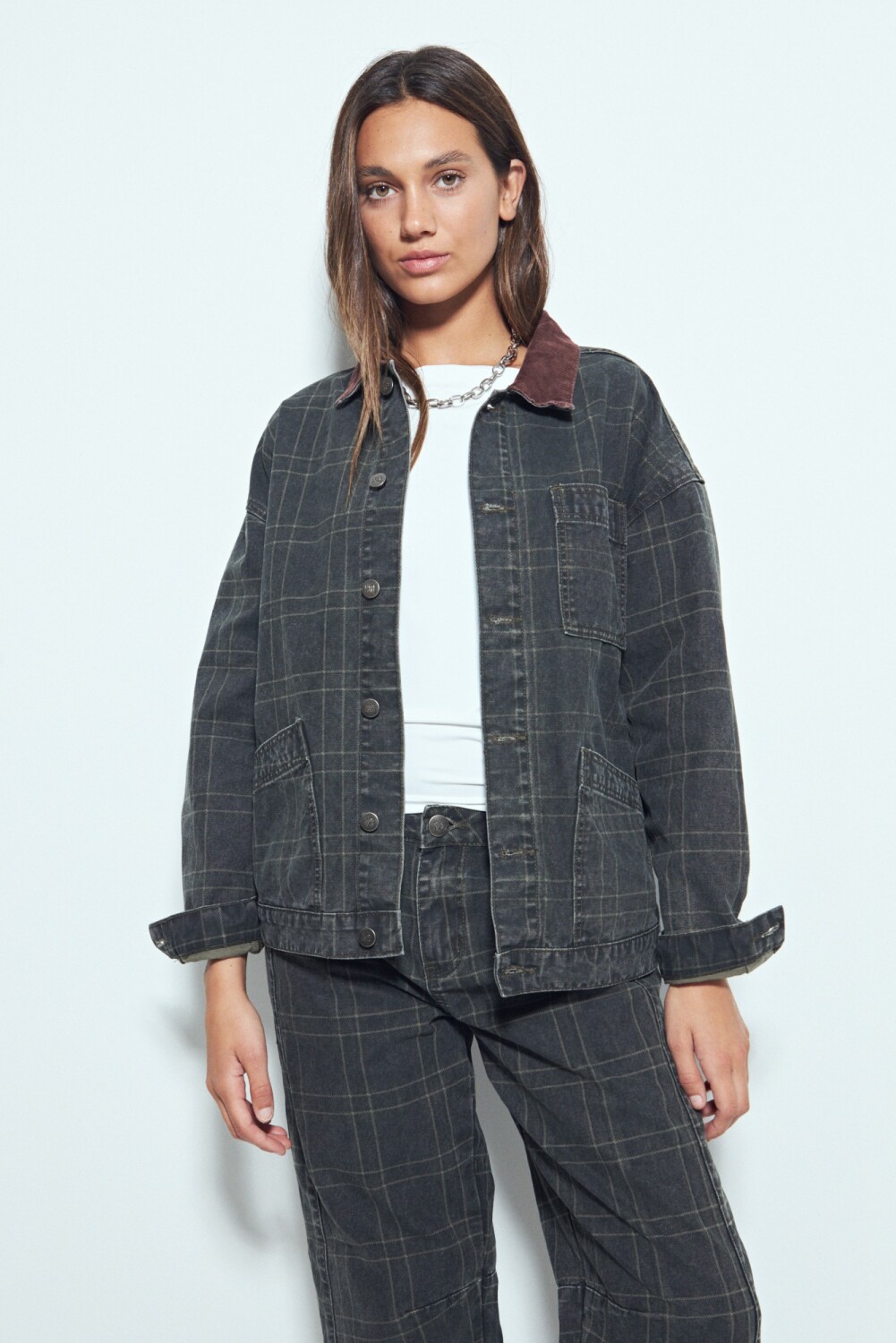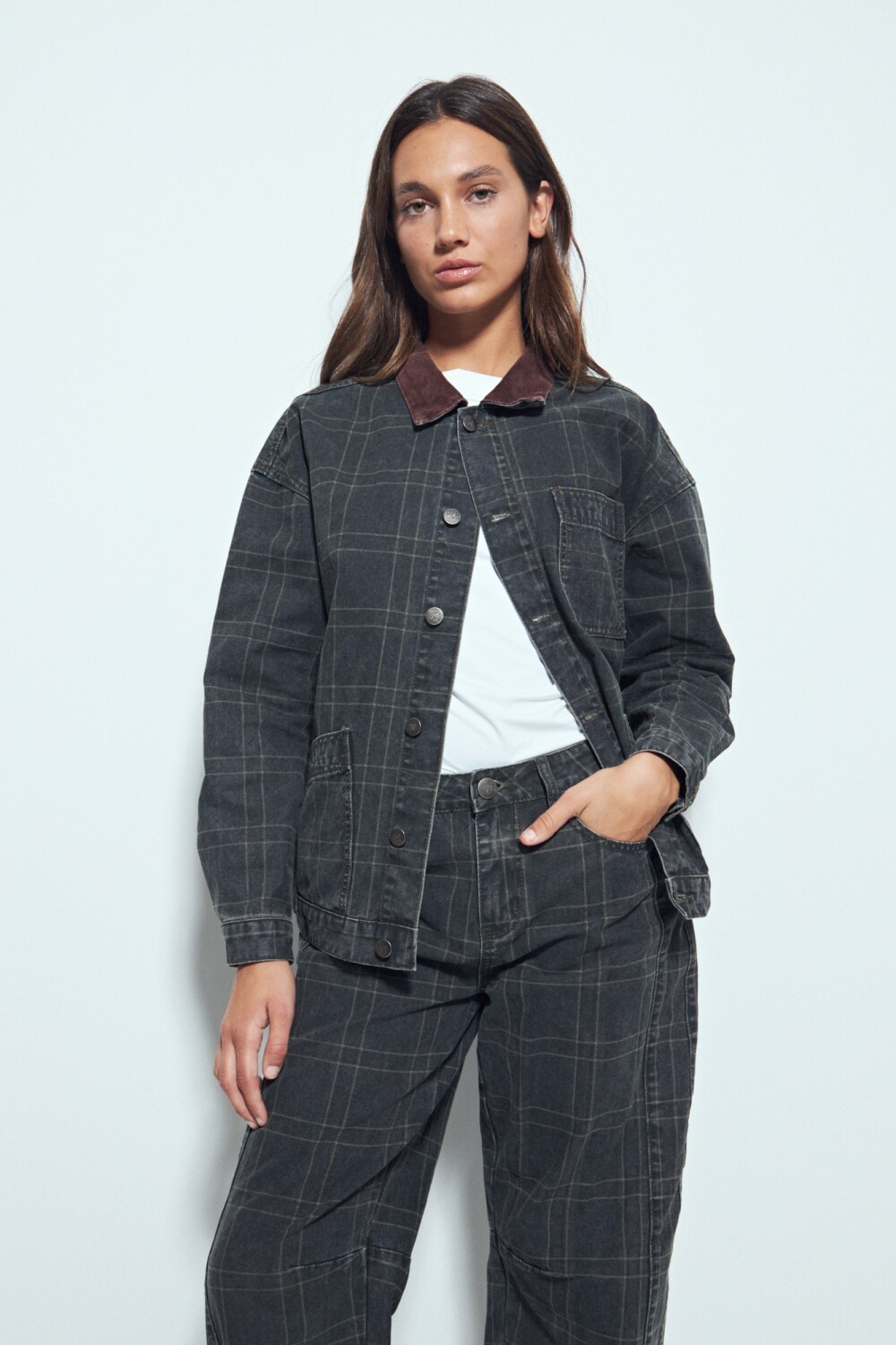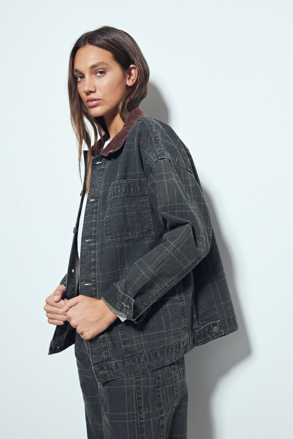 Sobrecamisa a cuadros de algodón, una prenda versátil que funciona como tercera capa en looks de temporada. El diseño relajado con bolsillos frontales y botones aporta un aire utilitario, mientras que el patrón a cuadros suma estilo con un toque atemporal. Ideal para usar abierta sobre básicos o cerrada como camisa.