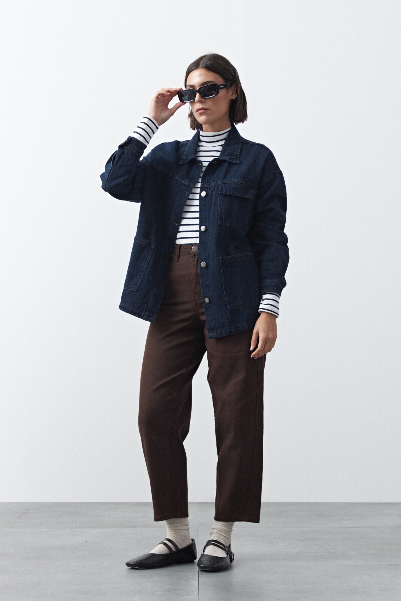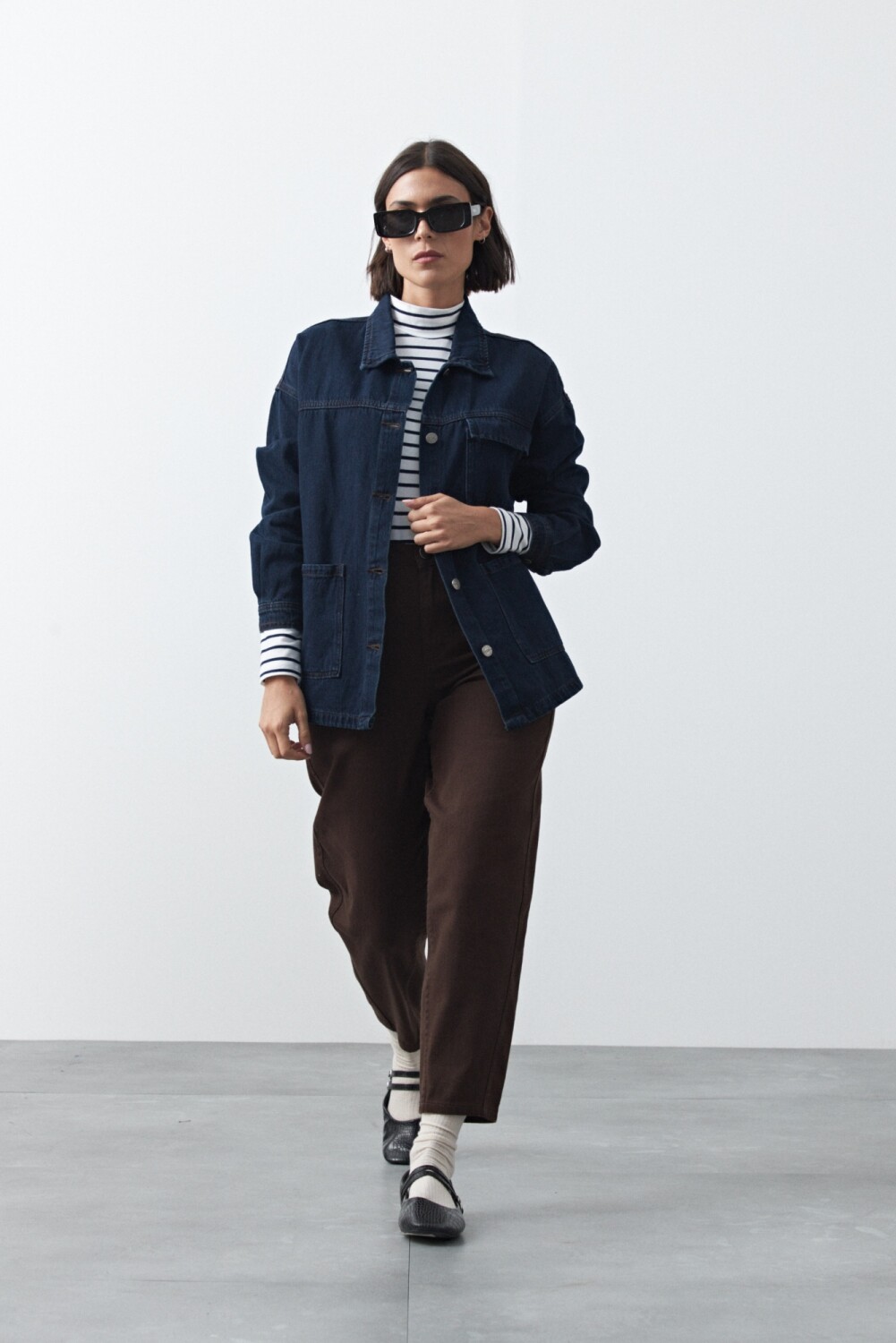 Sobrecamisa de jean con silueta relajada y cinturón para ajustar la prenda y definir la figura. Presenta bolsillos utilitarios y estructura liviana que la vuelve ideal para usar como abrigo intermedio. Un clásico atemporal que trasciende temporadas y funciona perfecto para superponer sobre tejidos o básicos, aportando un aire canchero y versátil a cualquier look.