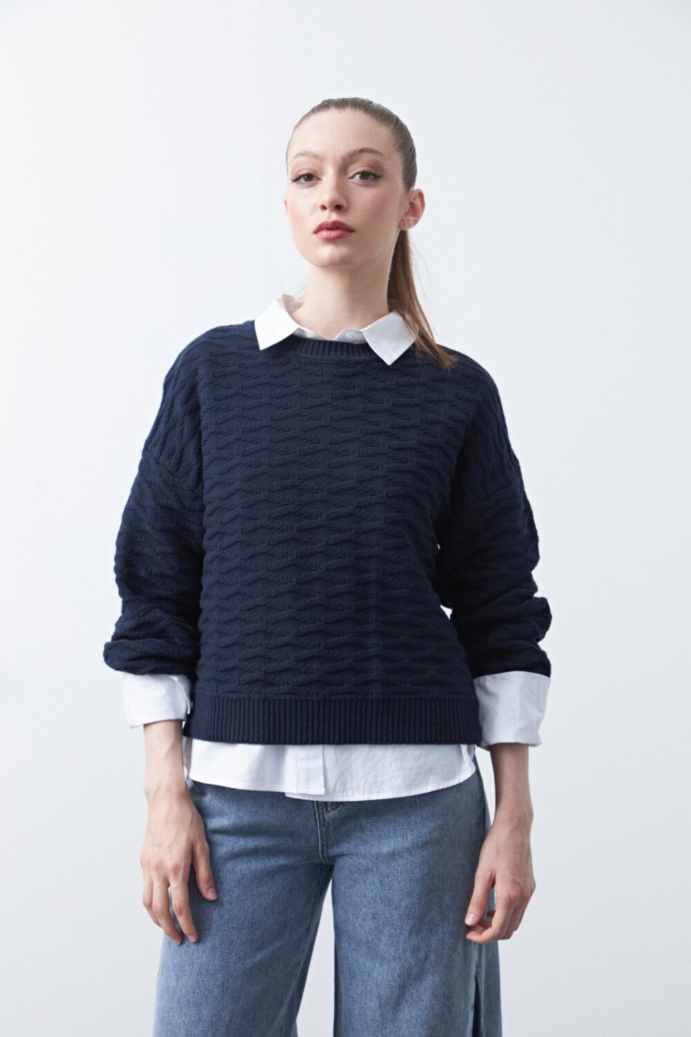 Sweater tramado de mangas abullonadas, de diseño delicado y textura protagonista que aporta profundidad visual al look. Las mangas con volumen sutil y puños elastizados equilibran estructura y comodidad, mientras que el tejido tramado suma un detalle distintivo que eleva este básico a una versión más trabajada. Ideal para looks urbanos prolijos o combinaciones más relajadas, es una prenda versátil que acompaña distintas ocasiones.