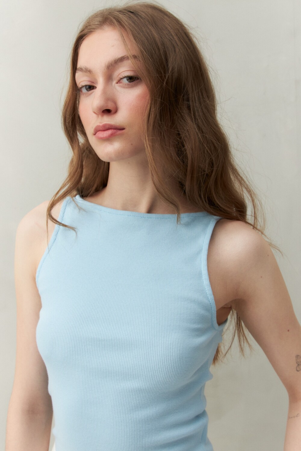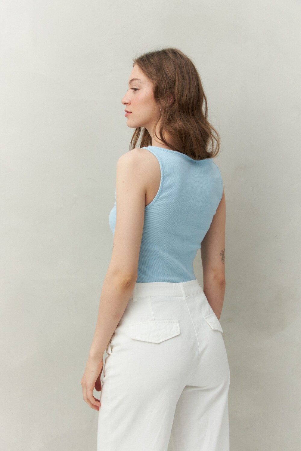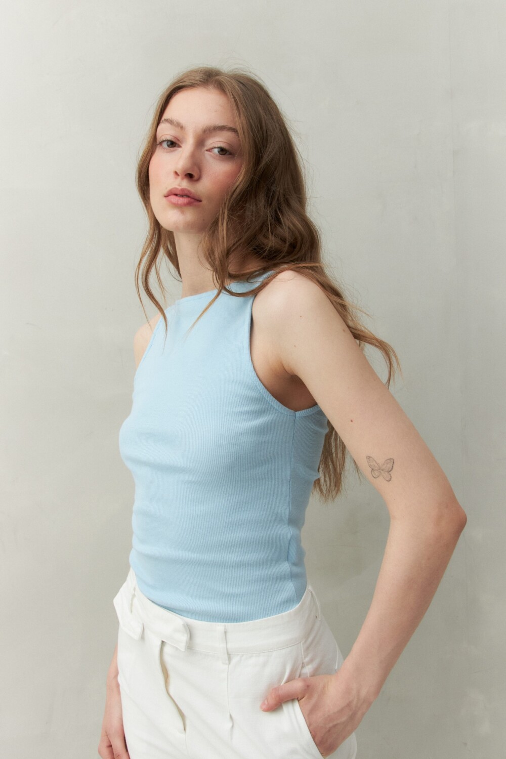 Un básico con aire contemporáneo, ideal para acompañar desde jeans hasta faldas o shorts. Su tejido de algodón con un toque de elastano ofrece suavidad, elasticidad y un calce cómodo que realza la silueta. El escote recto aporta una estética moderna y limpia, perfecta para looks minimalistas o como base de capas. Clave para elevar cualquier look con simpleza y estilo.