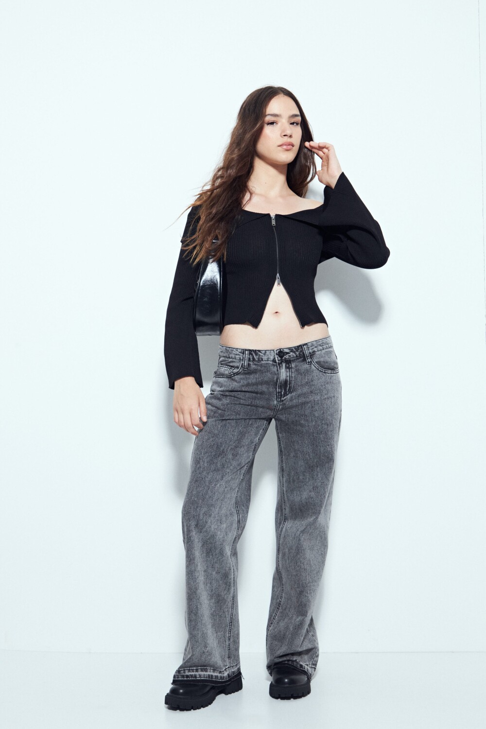 Top de manga larga tejido con escote amplio y diseño off shoulder que deja los hombros al descubierto, aportando un look moderno y femenino. El cierre frontal suma un detalle funcional y estético que permite regular el escote y el estilo, mientras que el tejido acanalado acompaña la silueta con un calce cómodo y favorecedor. Una prenda trendy, ideal para armar outfits urbanos con actitud y personalidad.