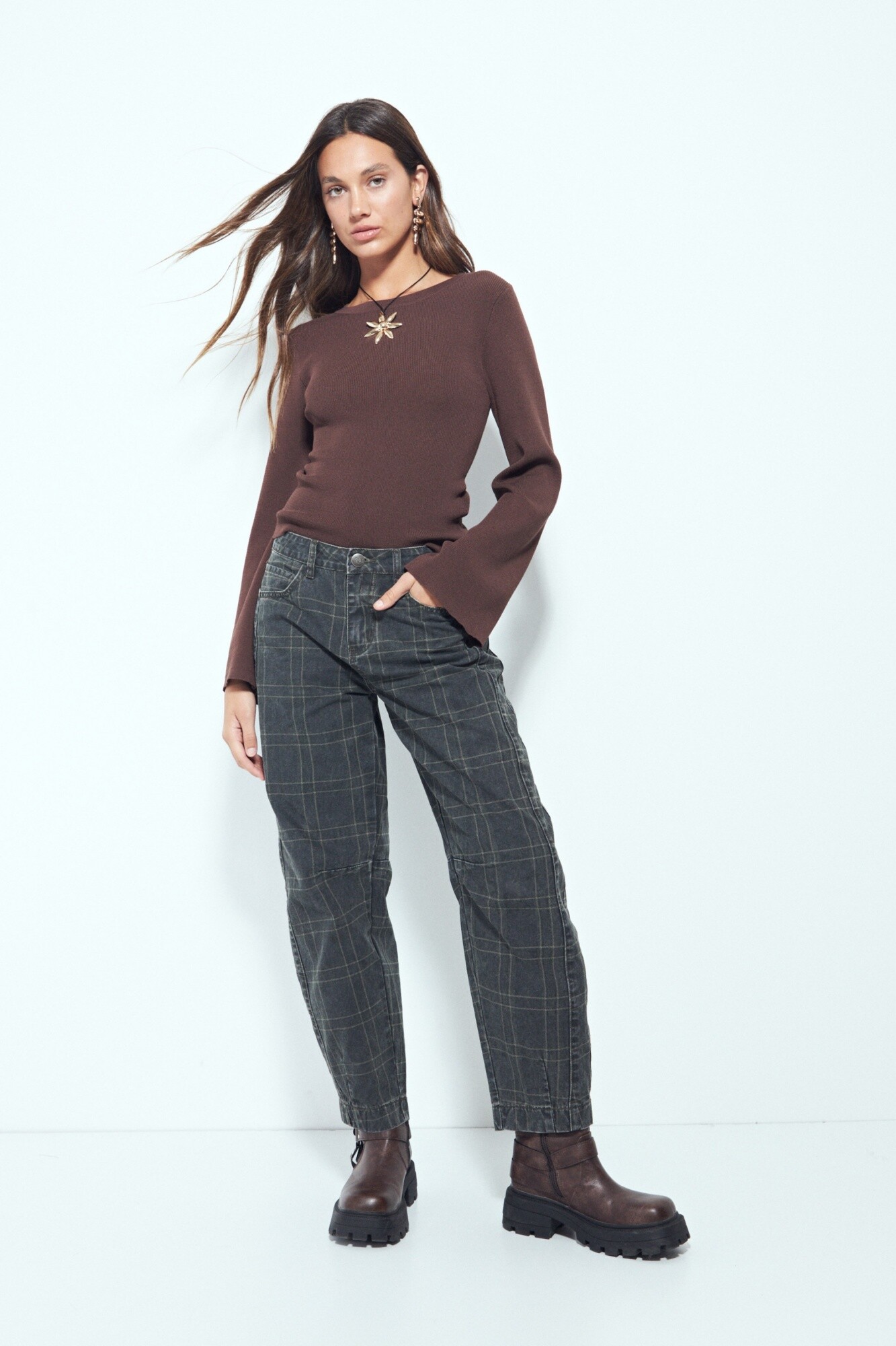 Top de punto acanalado de manga larga y calce al cuerpo, diseñado para realzar la silueta con una estructura limpia y minimalista. Su tejido con base de viscosa aporta una caída suave y un tacto agradable sobre la piel, mientras que el poliéster suma estabilidad y mayor durabilidad al uso diario.