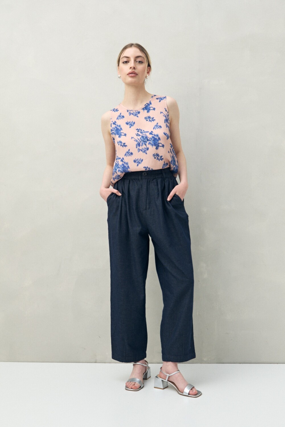 Top estampado sin mangas de silueta recta y caída liviana, ideal para sumar frescura y movimiento al look. Su escote redondo y diseño limpio permiten que el protagonismo lo tenga la estampa, aportando un aire femenino y actual.