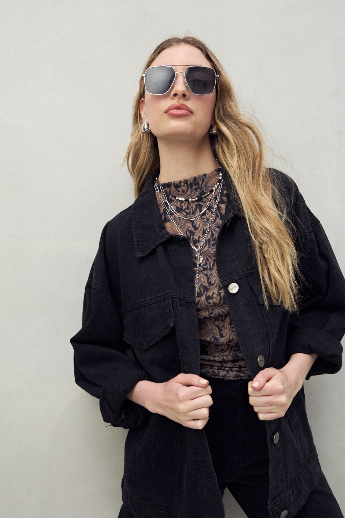 Top sin mangas con estampado animal print en tonos tierra, de silueta ajustada y cuello cerrado que realza la figura con un aire sofisticado. Su textura con leve fruncido lateral aporta dinamismo al diseño, convirtiéndolo en una pieza trendy y versátil, perfecta para looks de noche con actitud.