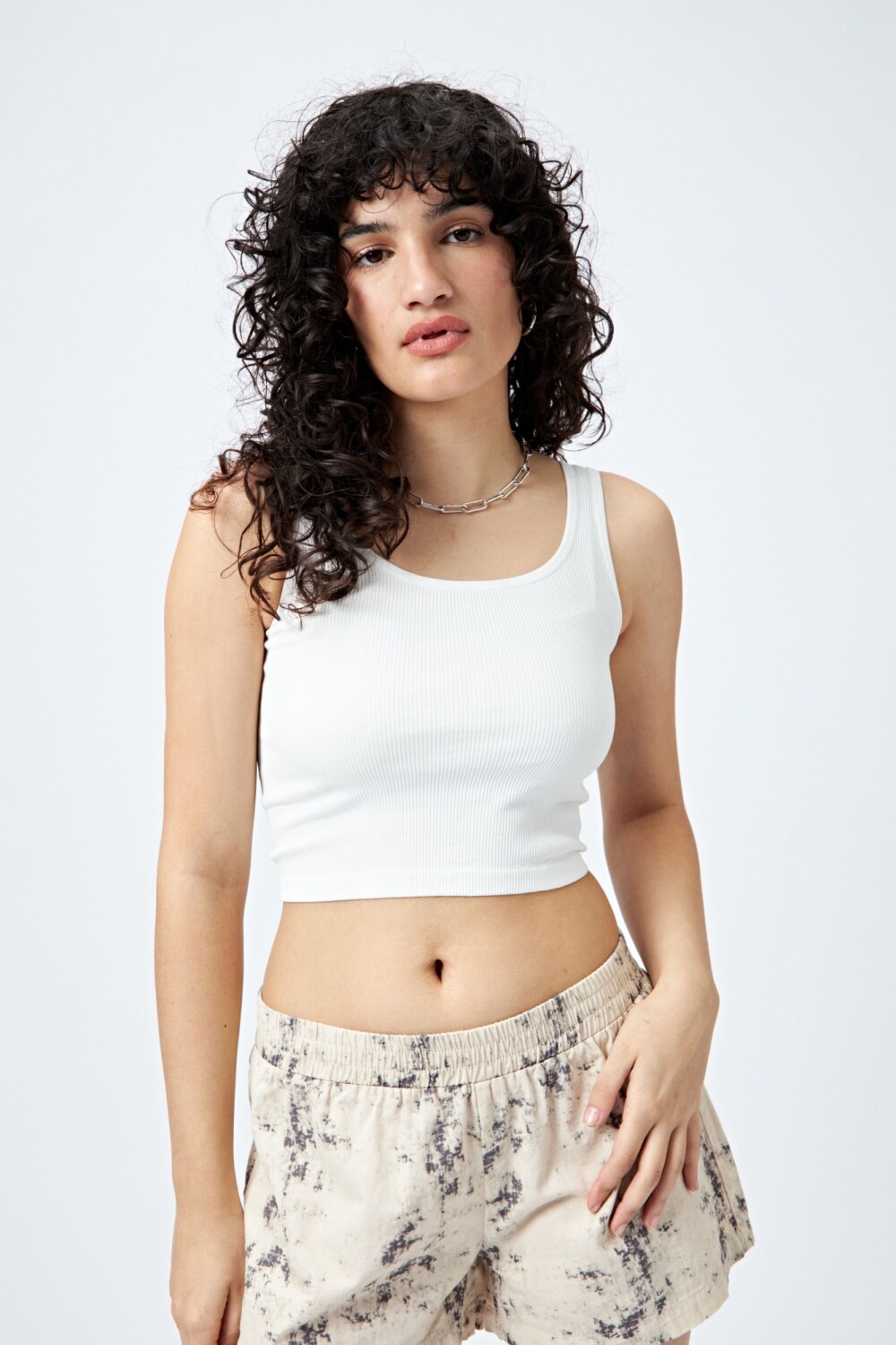 Este top de escote cuadrado y textura acanalada es el infaltable que resuelve cualquier outfit con simpleza y estilo. De calce ajustado y tacto suave, funciona tanto solo como en layering. Un básico versátil que eleva tus looks sin esfuerzo.