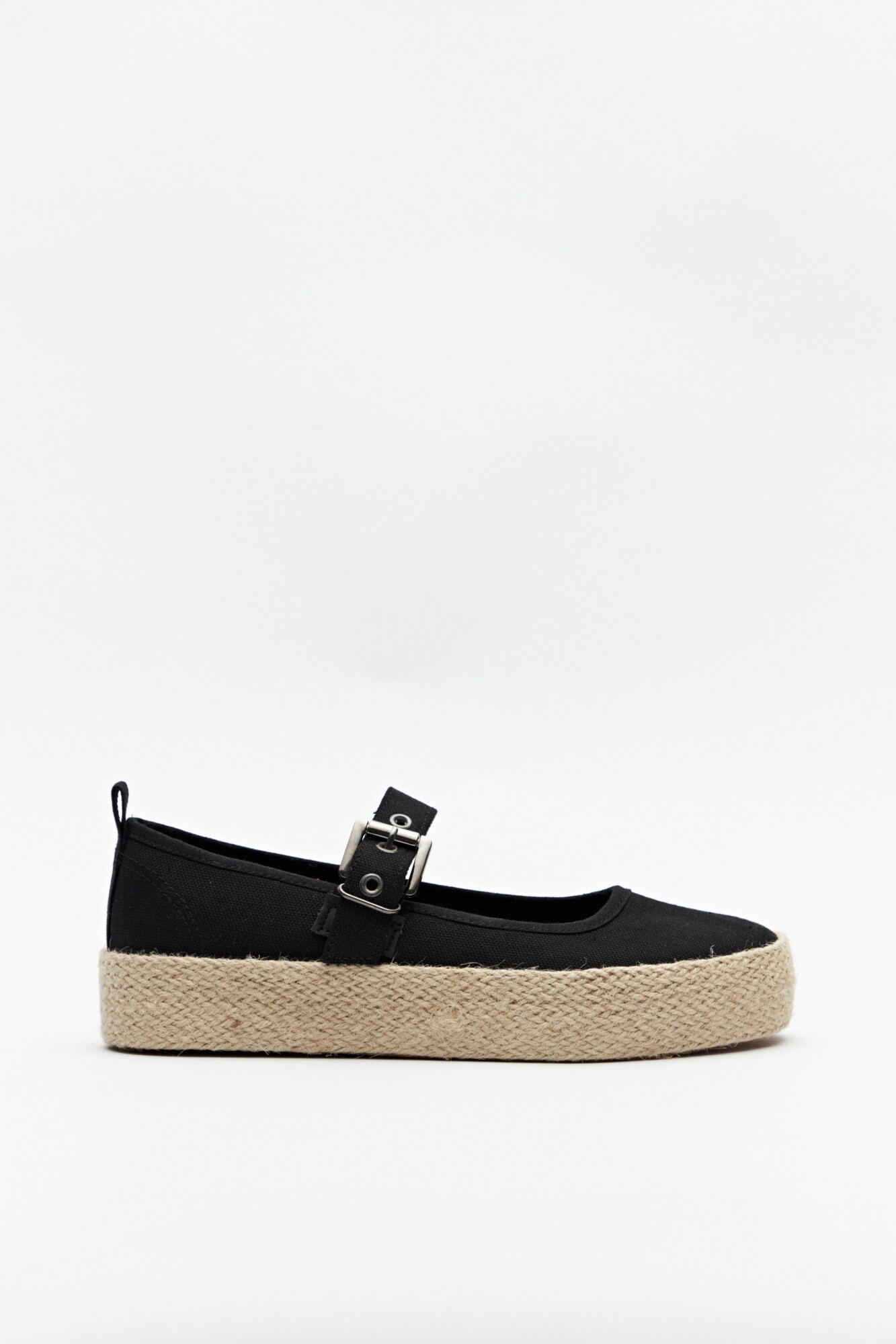 Zapatillas de tela con tira ajustable y hebilla metálica, suela de yute con plataforma de 3,5cm.