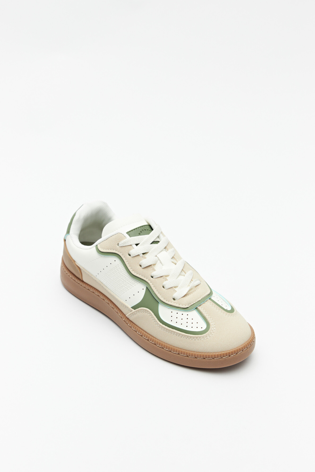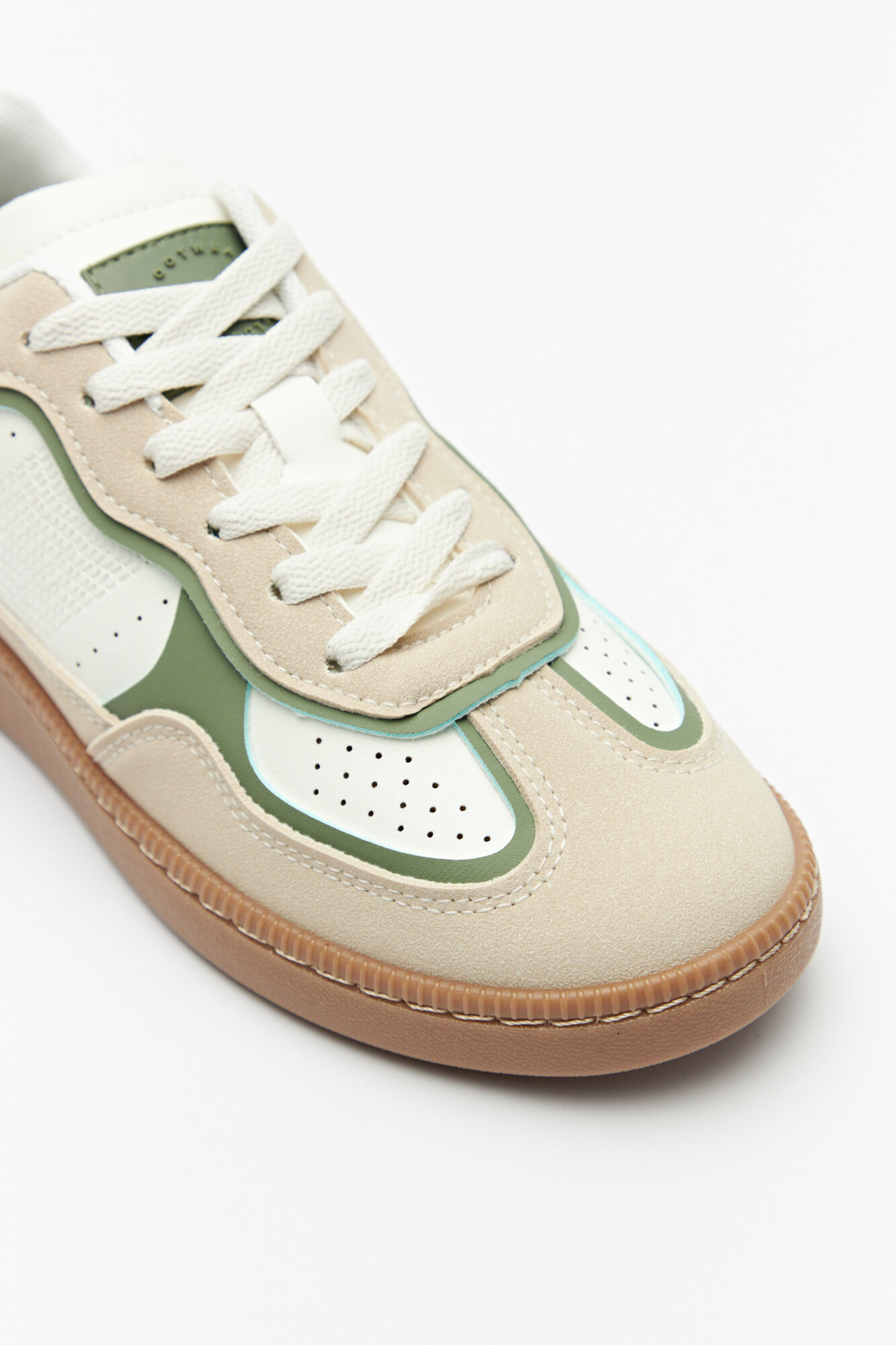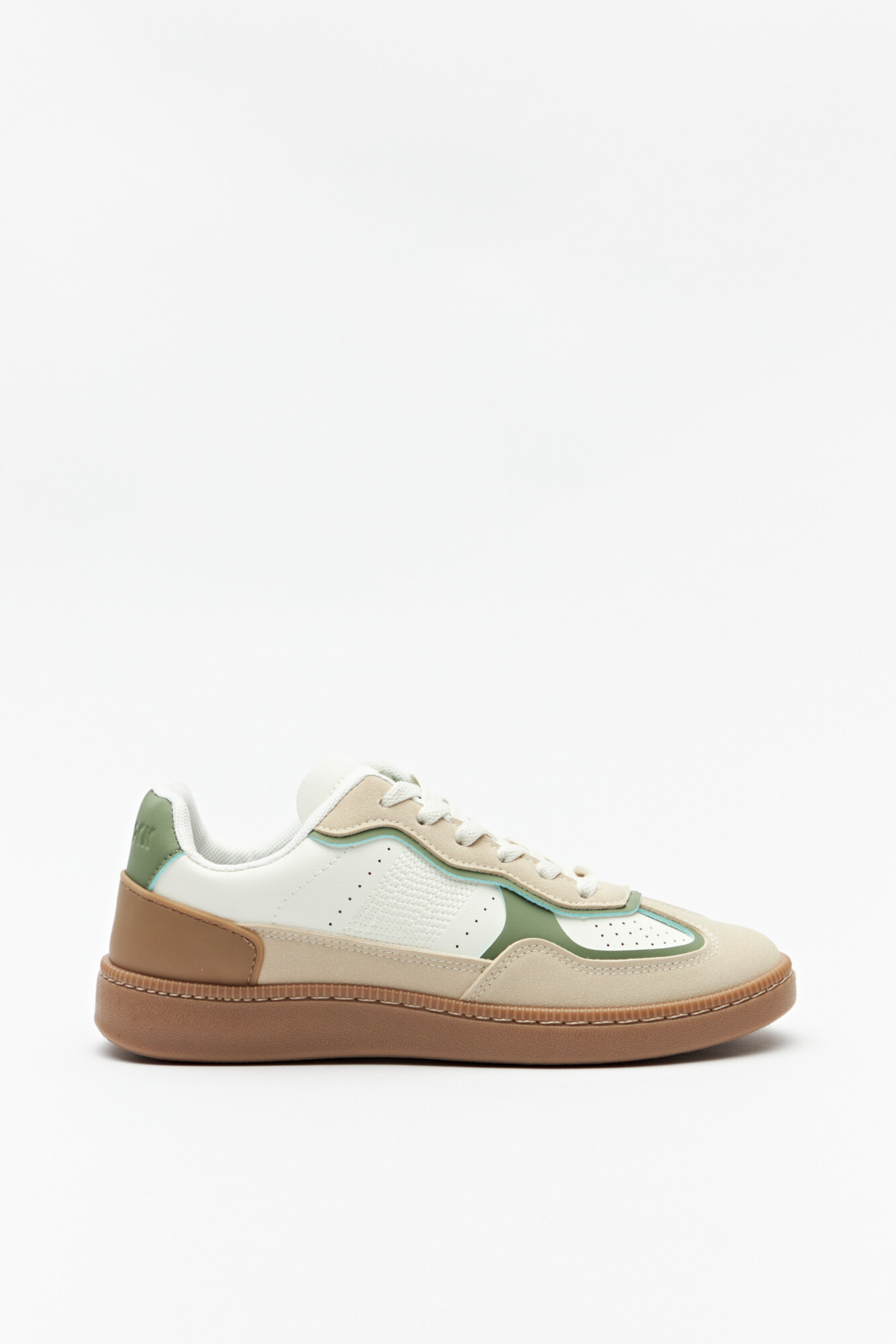 Zapatillas urbanas de gamuza con recortes en símil cuero y suela de goma de 2,5 cm de altura. Cómodas, versátiles y con vibra retro para levantar cualquier look.