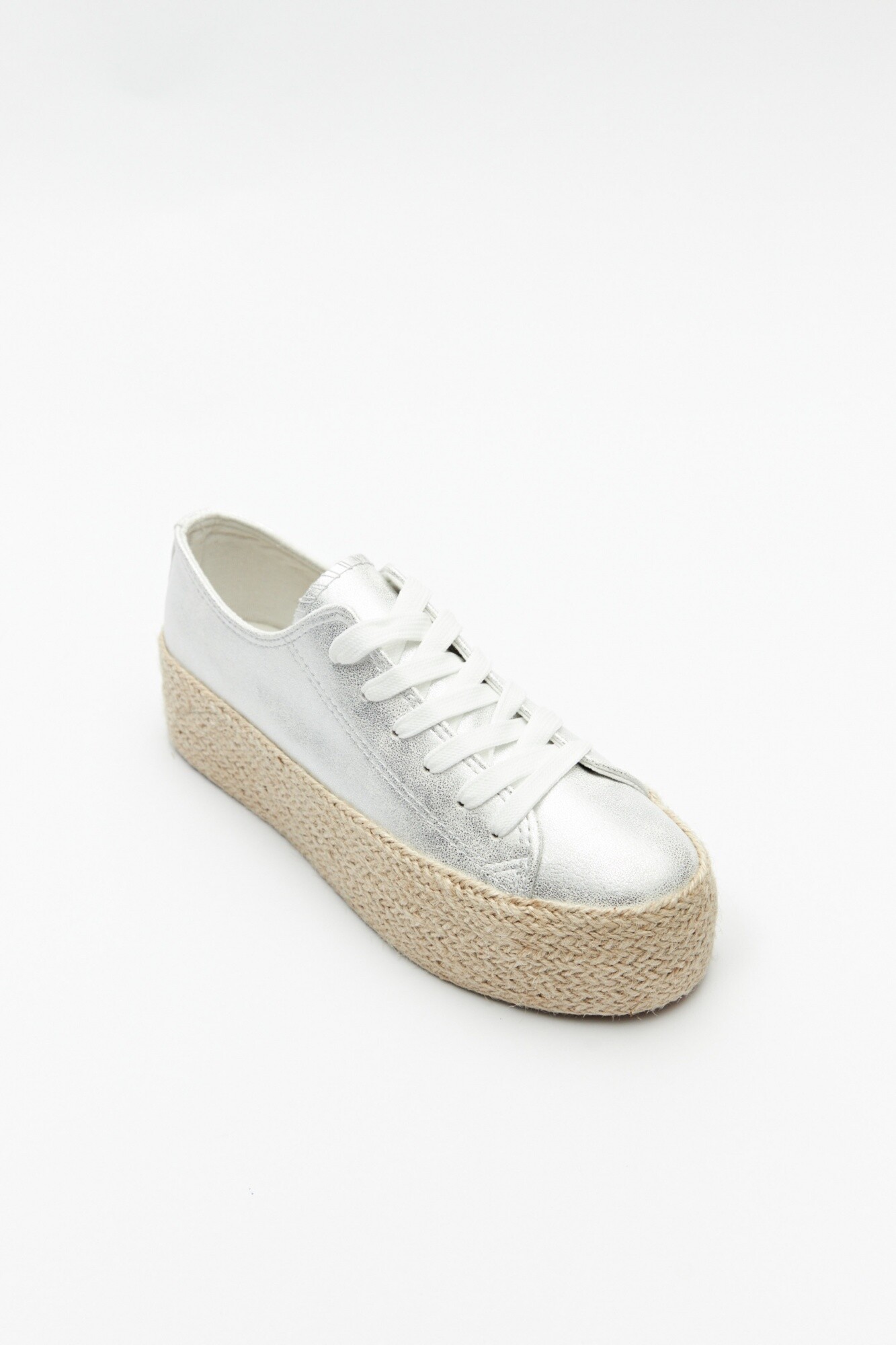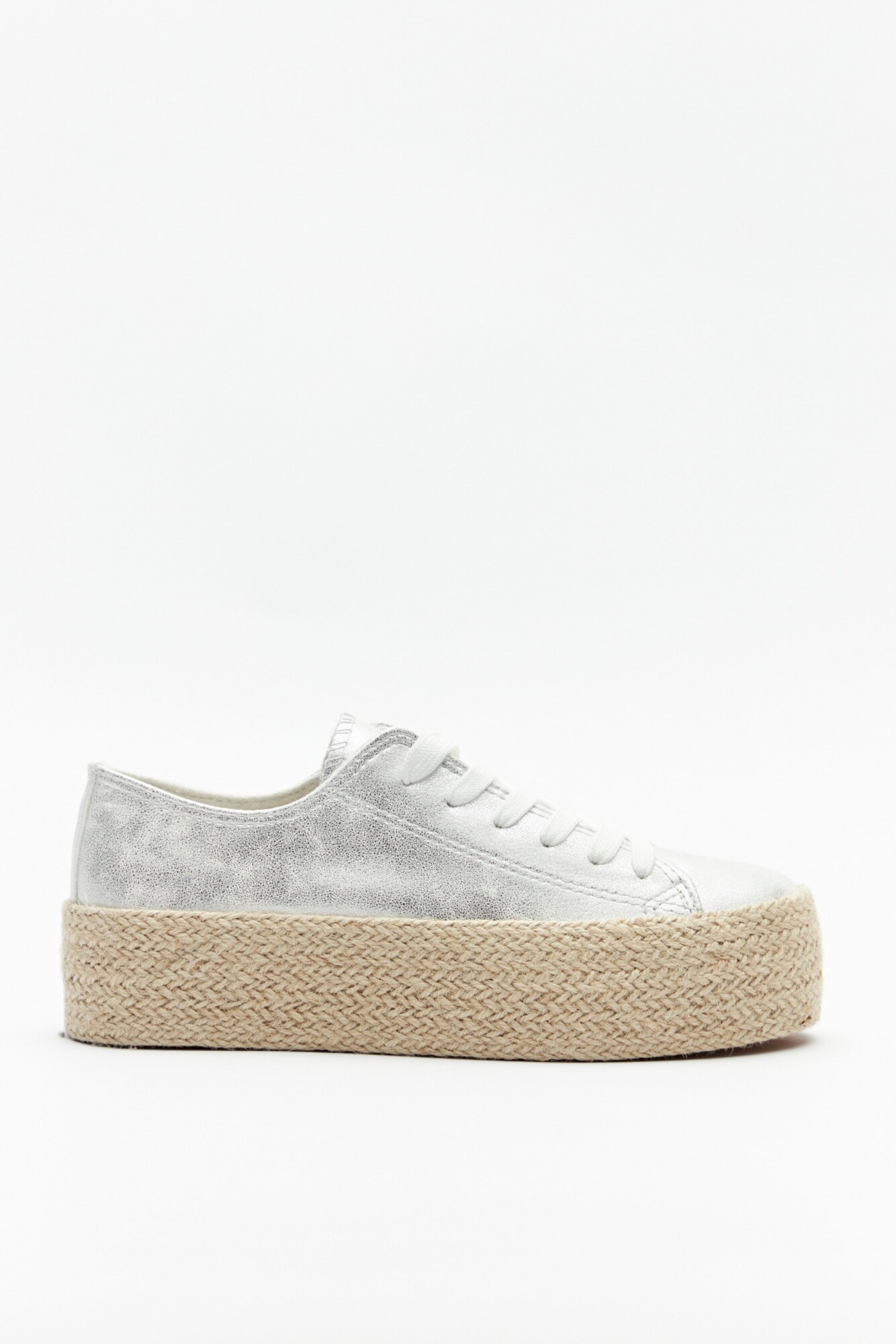 Zapatillas metalizadas de plataforma recta de yute de 4,5cm de altura.