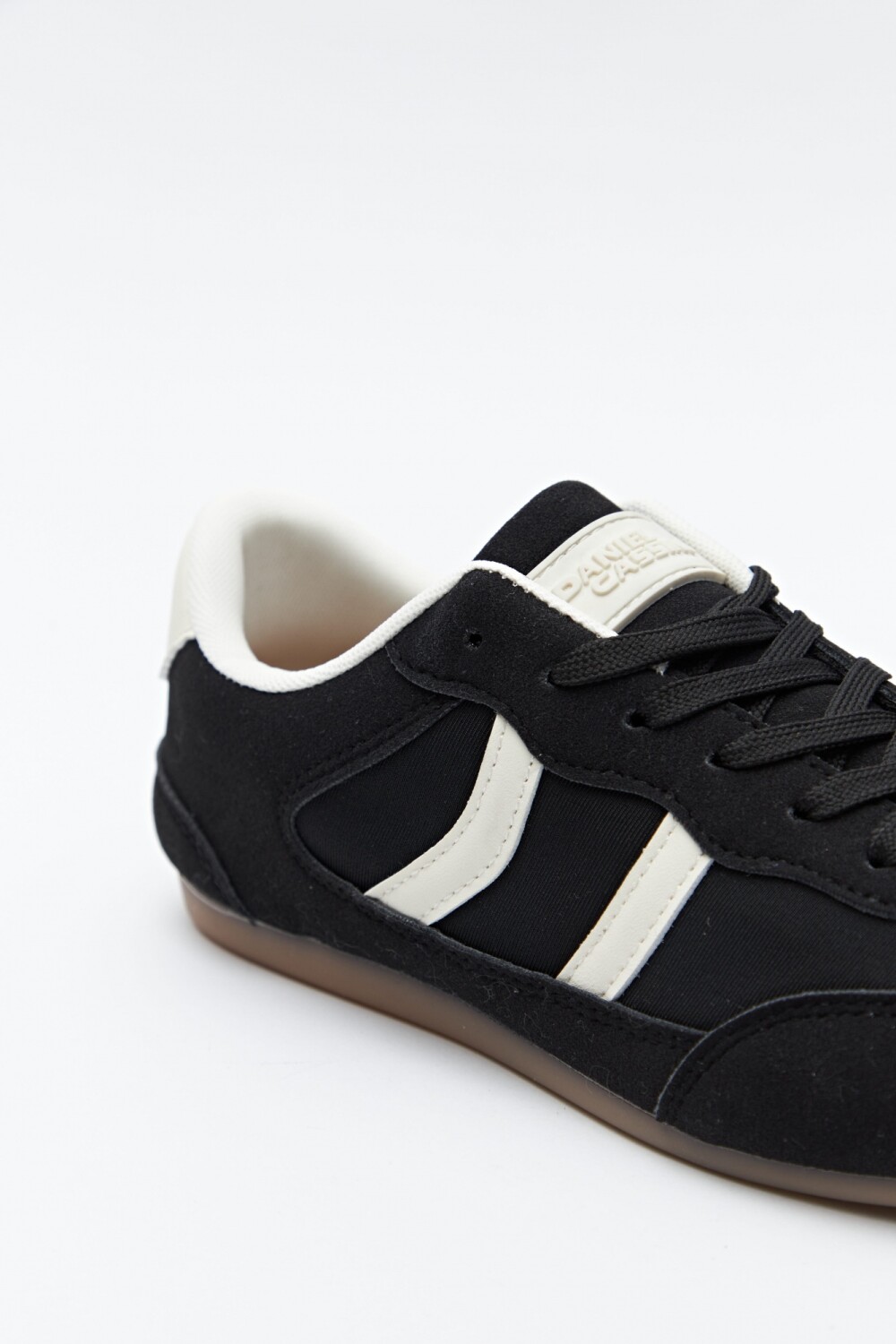 Zapatilla urbana de perfil bajo con diseño retro, confeccionada en poliuretano combinado con textura tipo gamuza. Presenta puntera redondeada, cordones clásicos y suela baja que aporta comodidad y un look relajado. En sintonía con las tendencias de calzado 2026, las zapatillas de inspiración vintage y siluetas limpias se consolidan como un esencial cotidiano, ideal para elevar cualquier look casual.