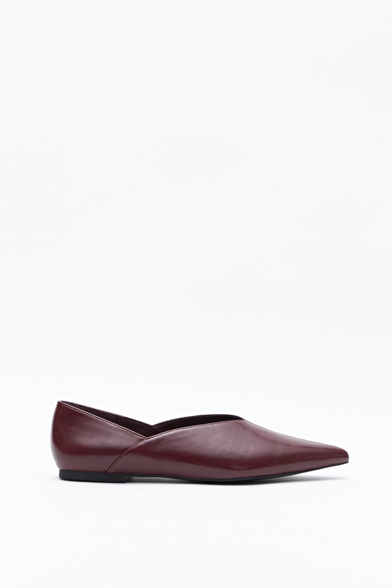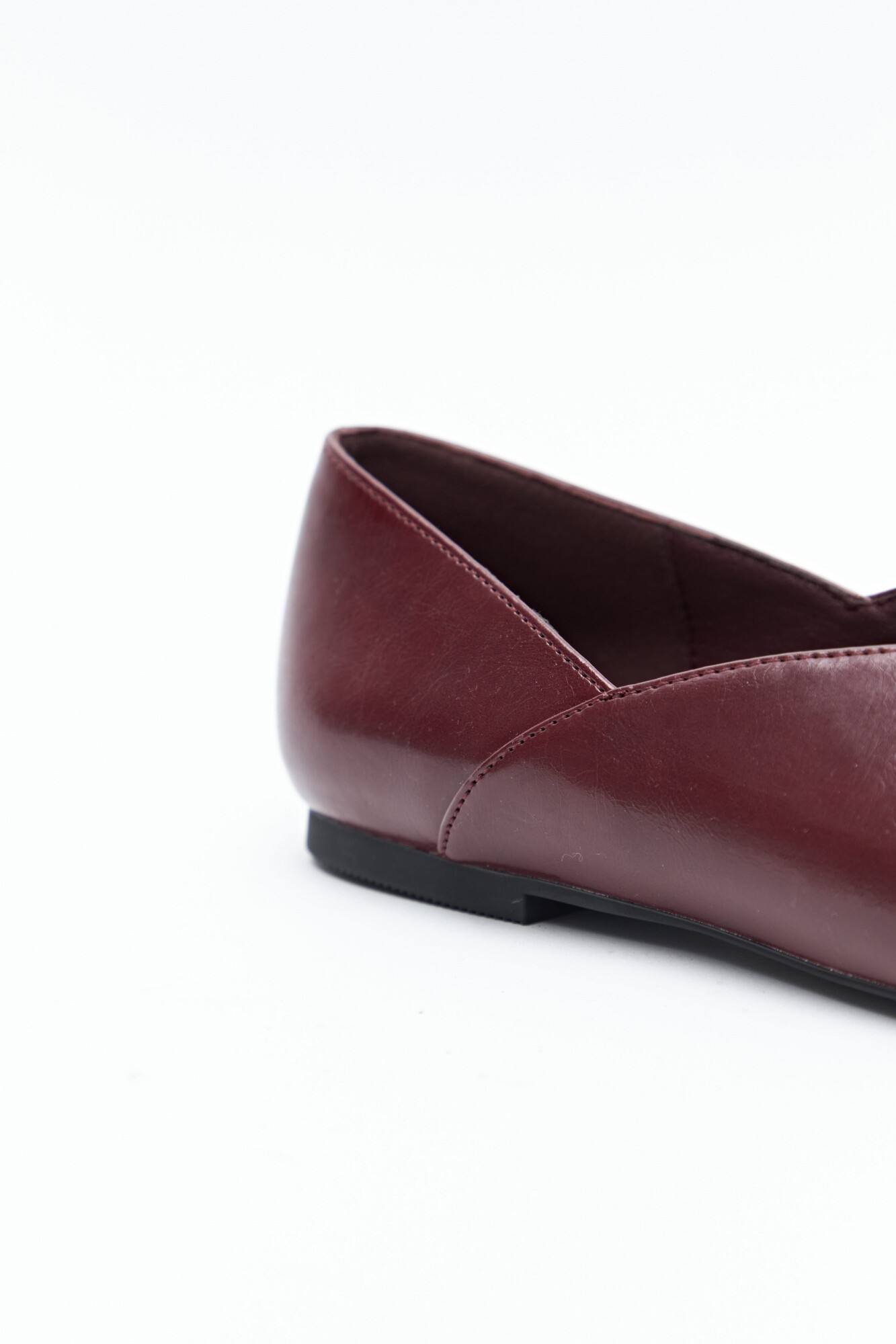 Zapato bajo de punta afinada con diseño minimal, confeccionado en poliuretano de acabado liso y estructura flexible. Presenta base baja y silueta limpia que aporta comodidad y un look pulido. En sintonía con las tendencias de calzado 2026, los modelos planos de líneas depuradas y estética atemporal se consolidan como un esencial del guardarropa urbano, ideales para elevar cualquier look.